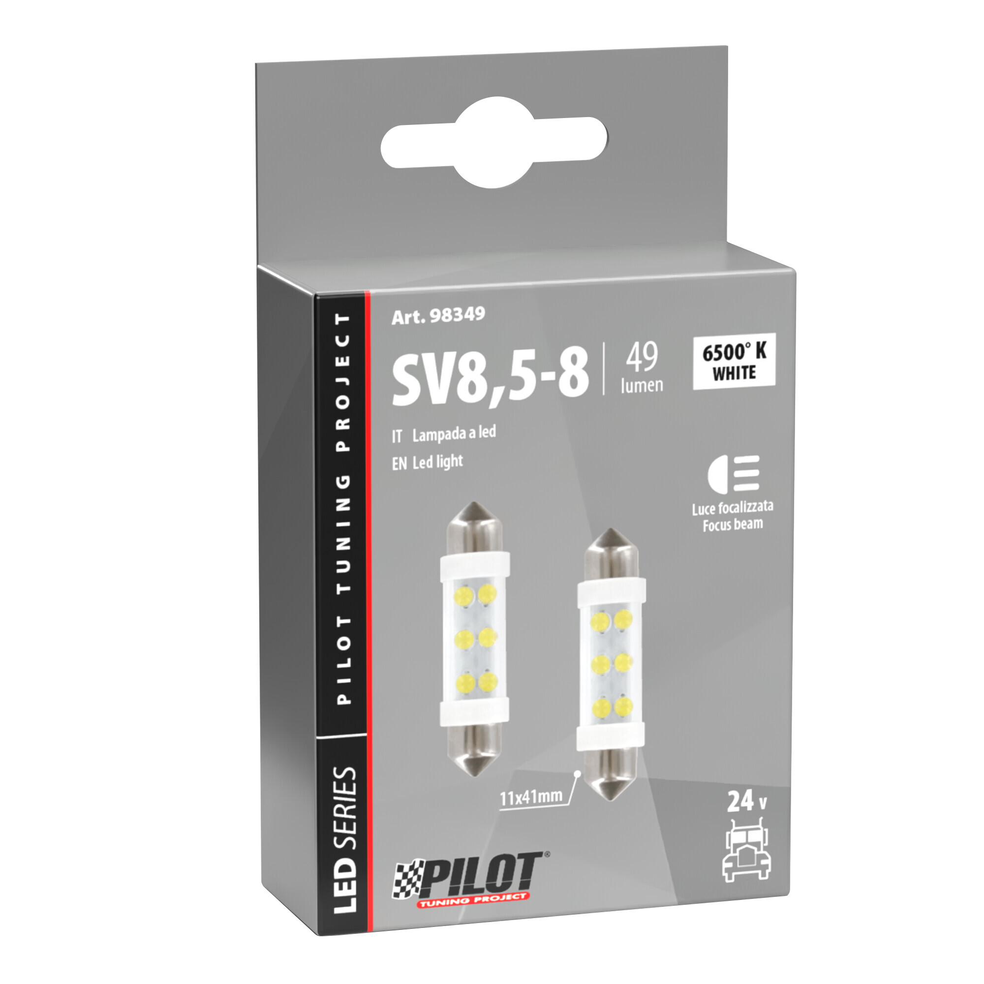 24V Led Series – 6 Led – 11×41 mm – SV8,5-8 – 2 pz – Scatola – Bianco