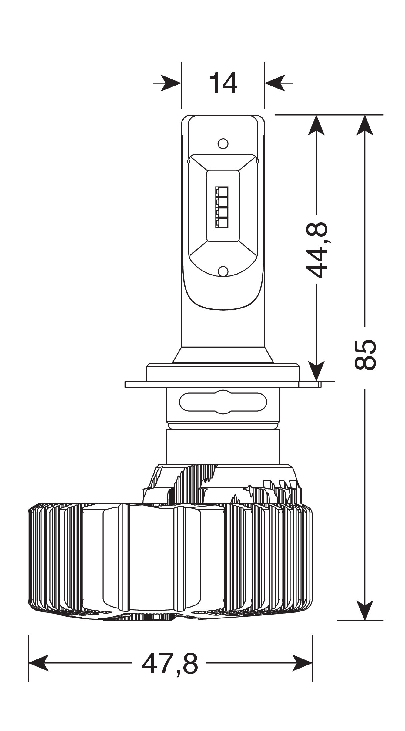 | Dati Extra | Volt: 9/32V Lampada: (H7) Watt: 25W Centralina: OUT Attacco: PX26d Temperatura Colore: 6.500° K Lumen (Freddo): 2250 lm Lumen (Caldo): 1400 lm Led: 8 Lumiled ZES Chips |