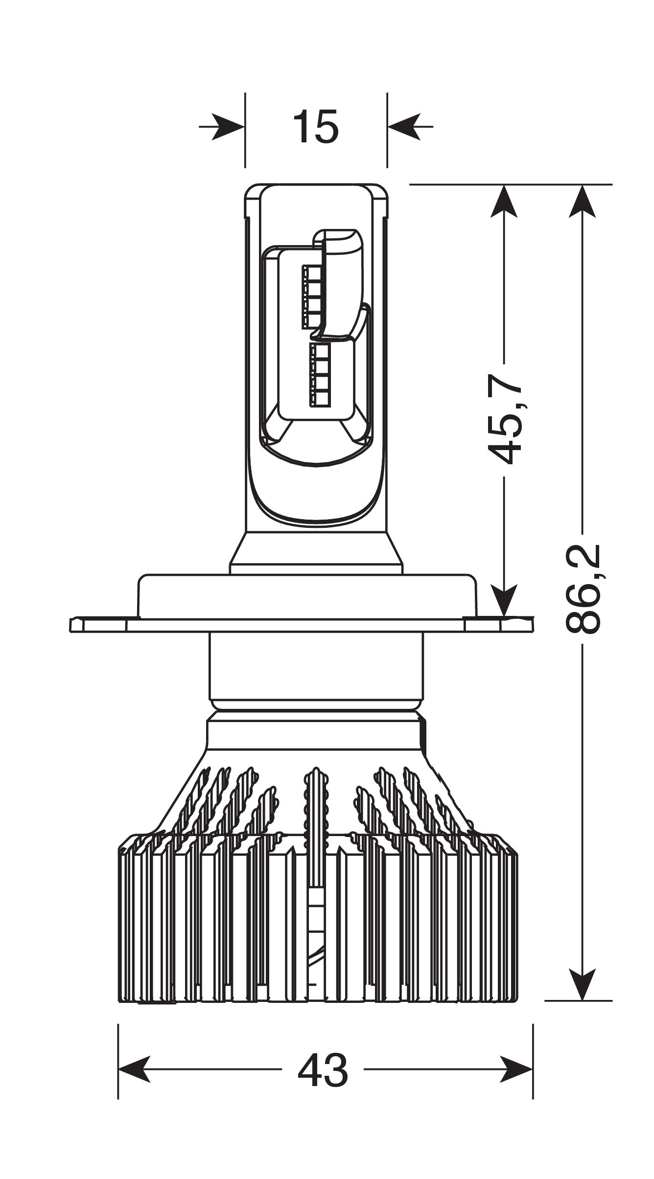 | Dati Extra | Volt: 9/32V Lampada: (H4) Watt: 30W Centralina: IN Attacco: P43t Temperatura Colore: 6.500K Lumen (Freddo): 1300 / 1500 lm Lumen (Caldo): 1000 / 1250 lm Led: 16 Lumiled ZES Chips |