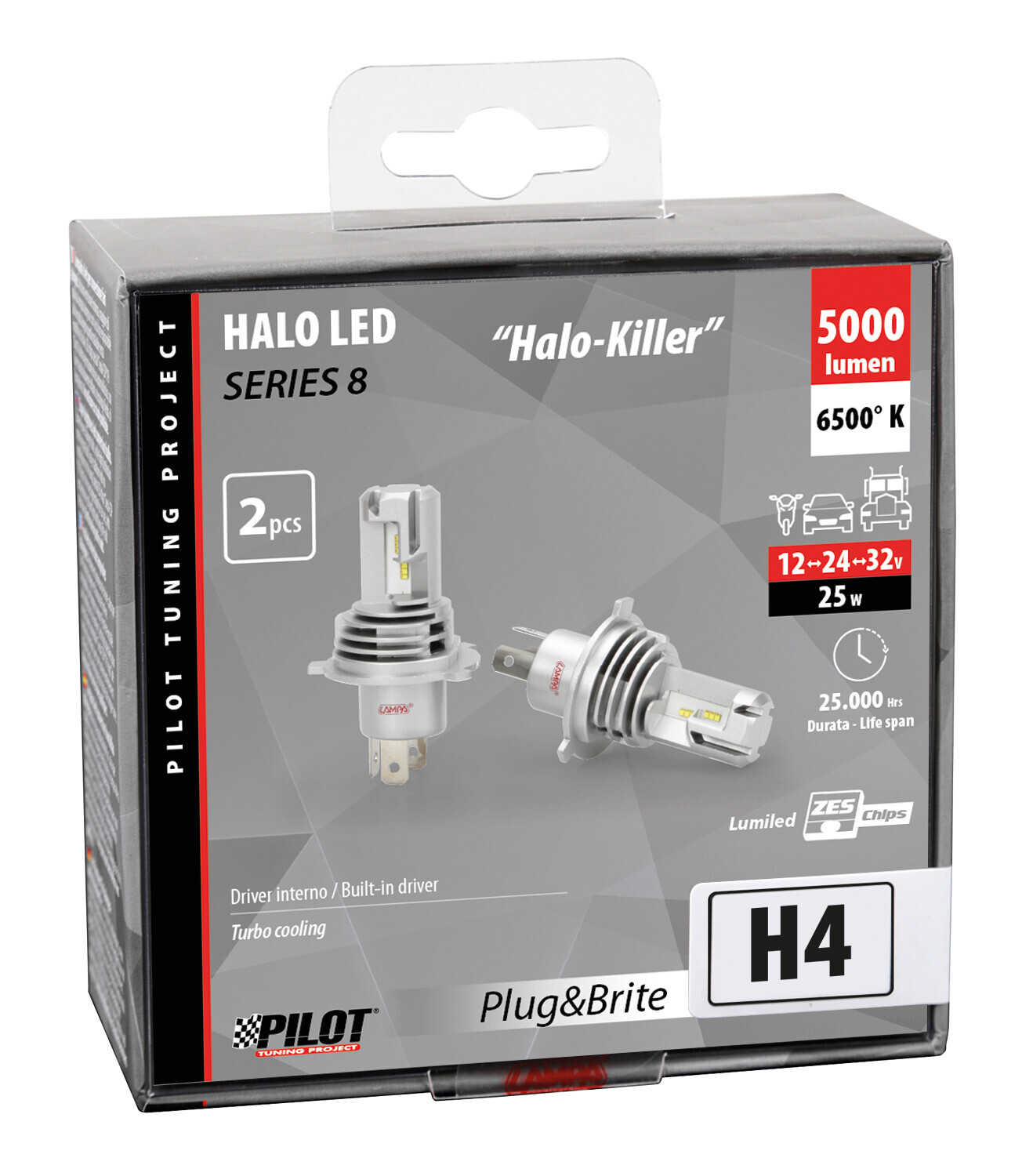 9/32V Halo Led Serie 8 Halo Killer – (H4) – 25W – P43t – 2 pz – Scatola