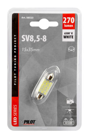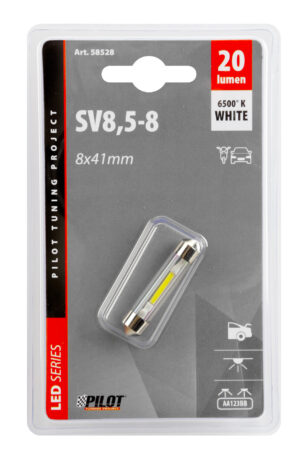 12V Led Series – 1 SMD x 9 chips – 8×41 mm – SV8,5-8 – 1 pz – D/Blister – Bianco