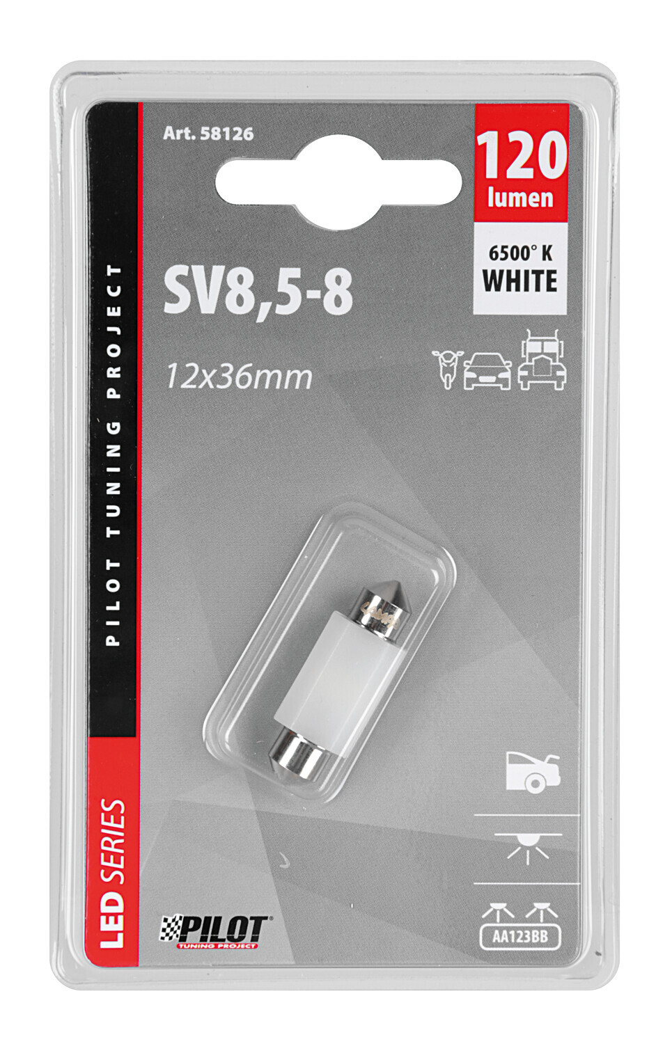 | Dati Extra | Volt: 9/32V Lampada: (C5W-C10W) Attacco: SV8,5-8 Temperatura Colore: 6500K Disegno: L157 Lumen (Freddo): 120 lm Led: Smd |