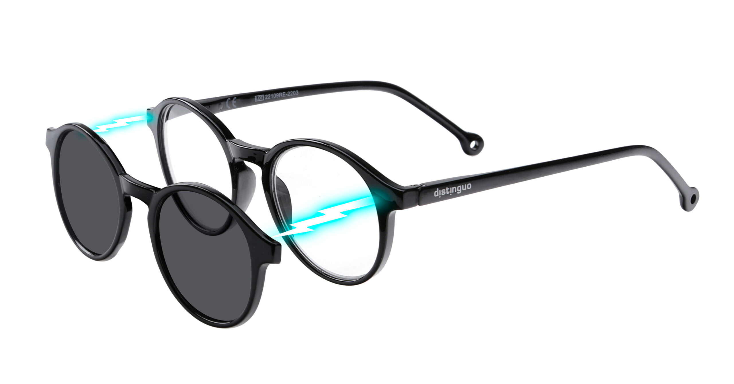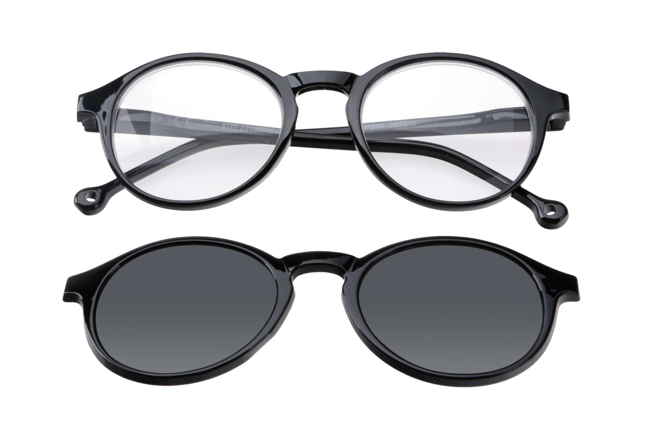 901, occhiali da lettura con clip da sole magnetica removibile – Ricarica singola gradazione – Tondo – +1.0 – Nero lucido