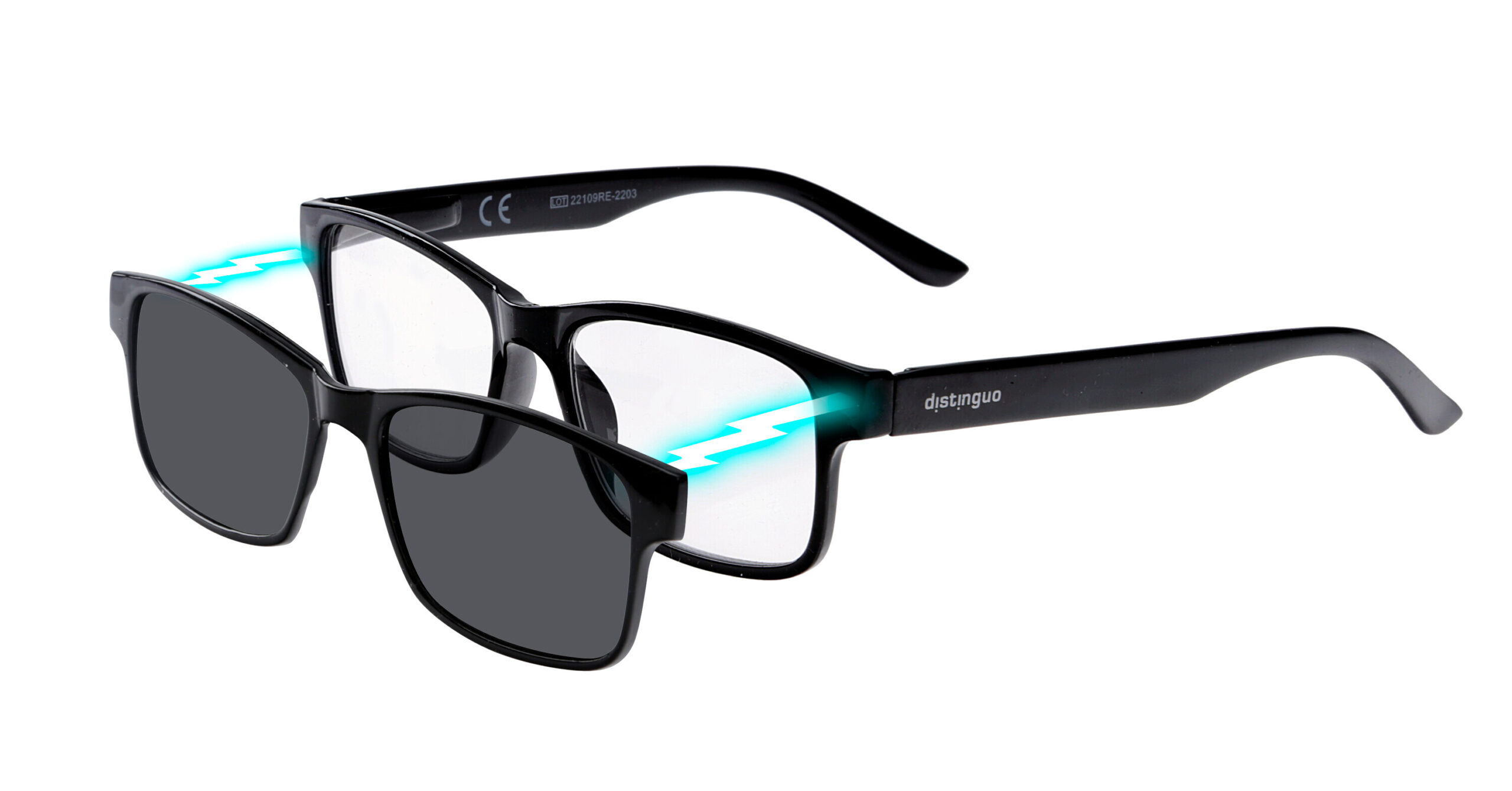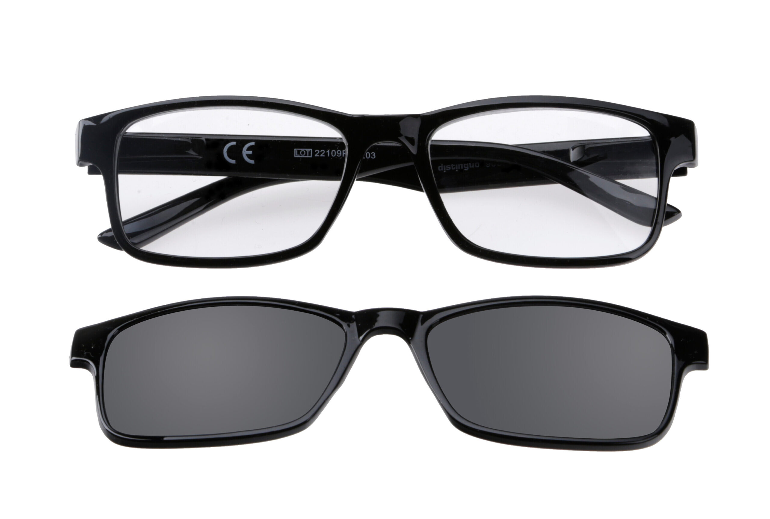 903, occhiali da lettura con clip da sole magnetica removibile – Ricarica singola gradazione – Quadrato – +1.0 – Nero lucido