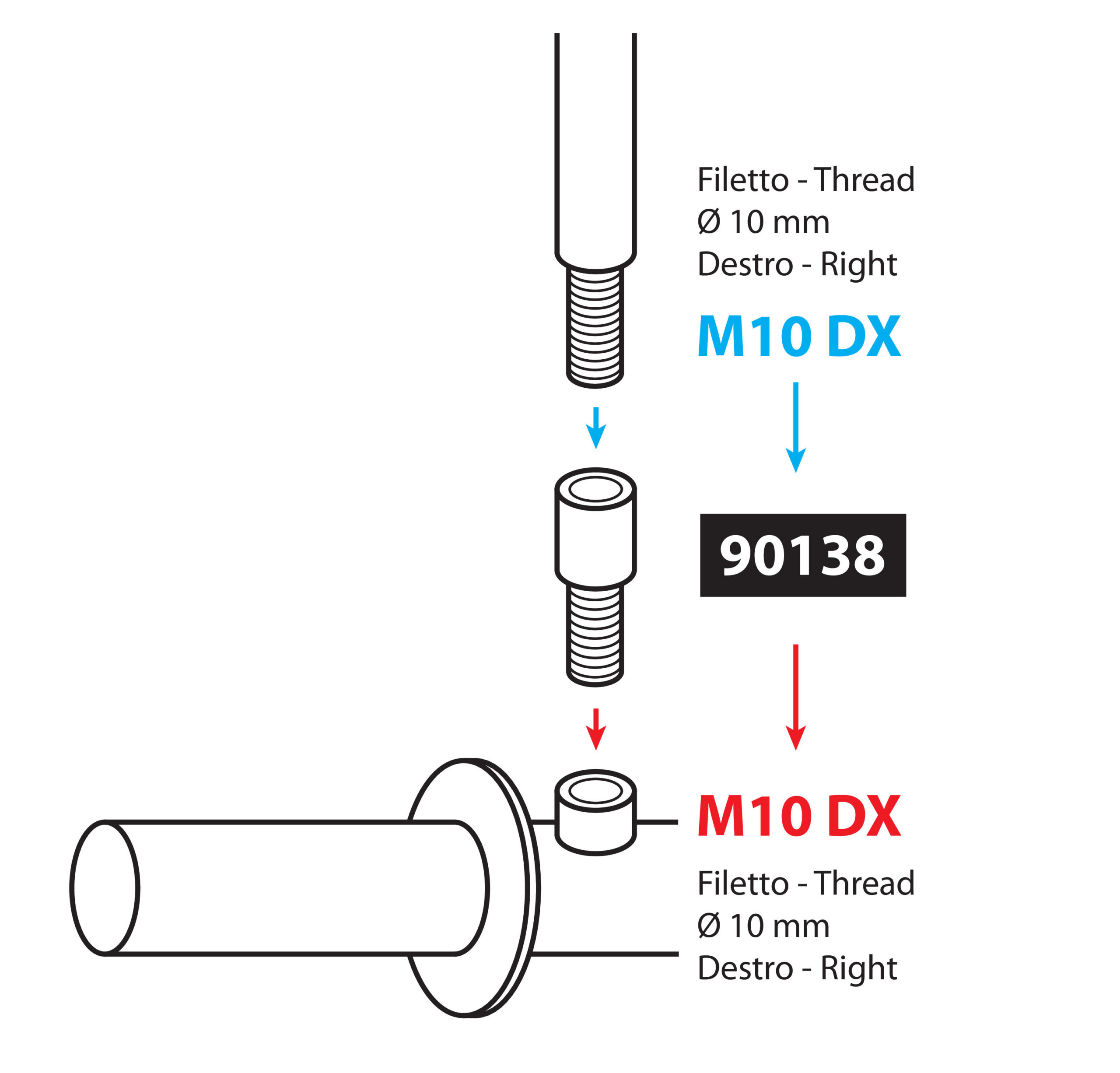Adattatore per specchi moto – Filetto Ø 10 mm dx > Ø 10 mm dx