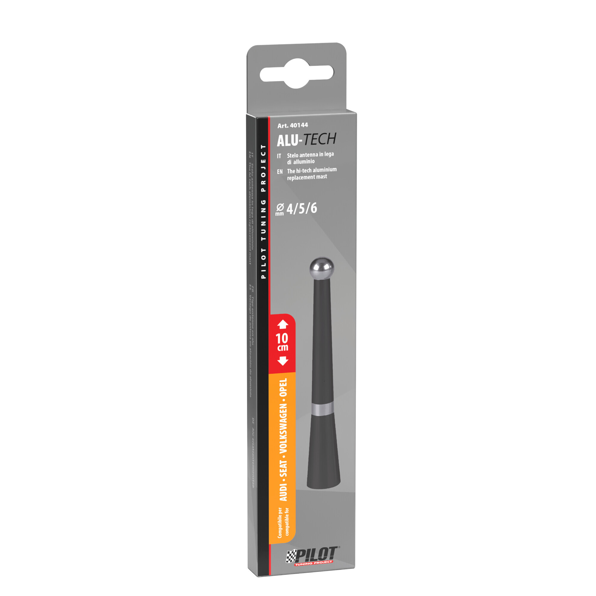 Stelo antenna in lega di alluminio. Sostituisce le comuni antenne aggiungendo un tocco hi-tech. Ottima ricezione del segnale radio