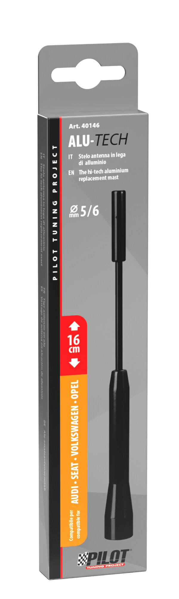 Stelo antenna in lega di alluminio. Sostituisce le comuni antenne aggiungendo un tocco hi-tech. Ottima ricezione del segnale radio