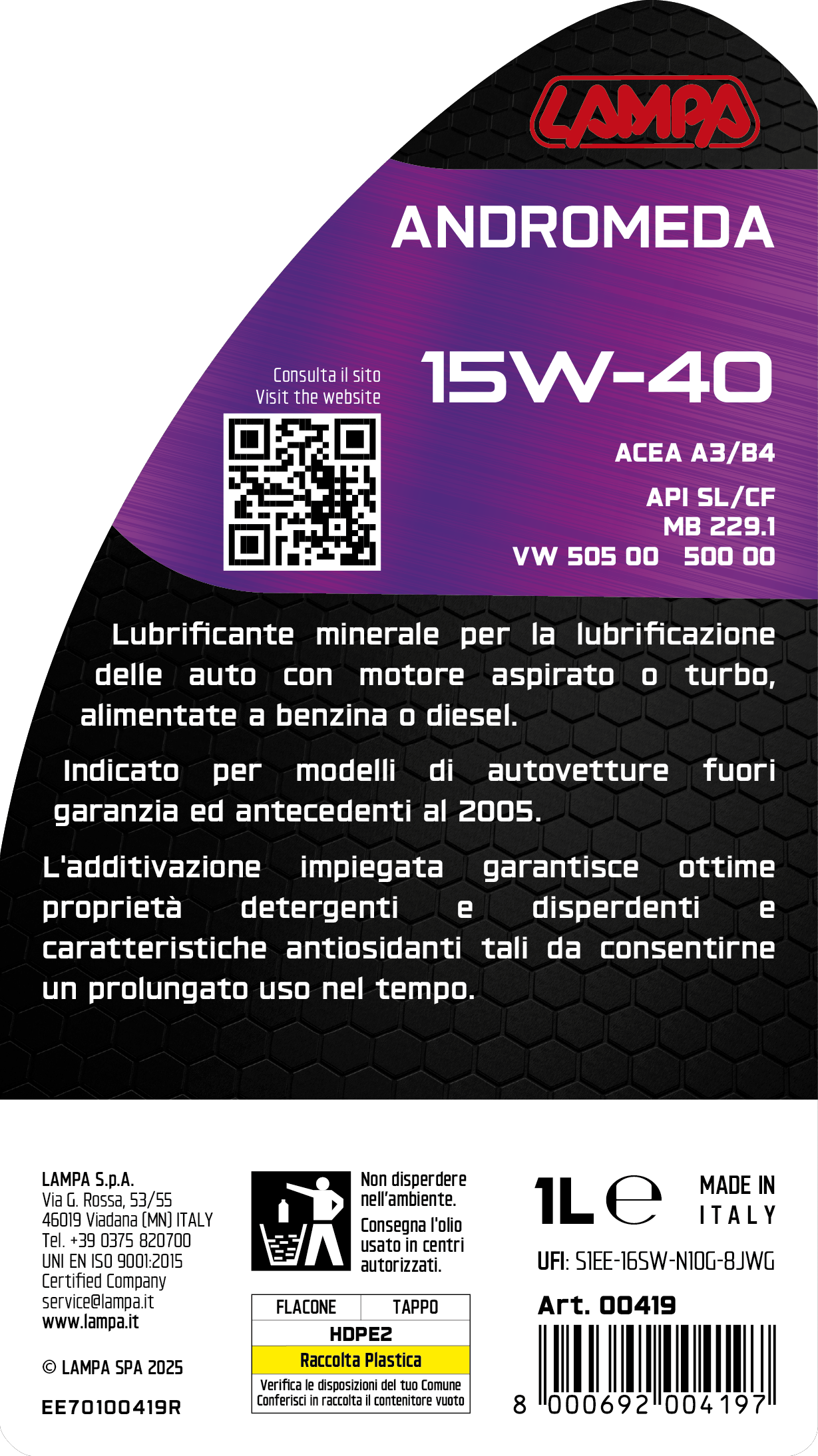 Andromeda 15W-40, olio motore auto – 1 L