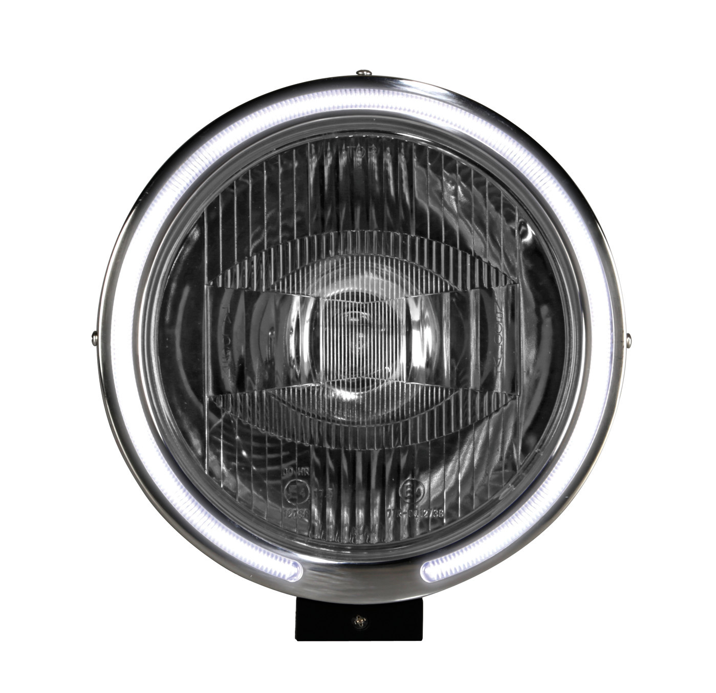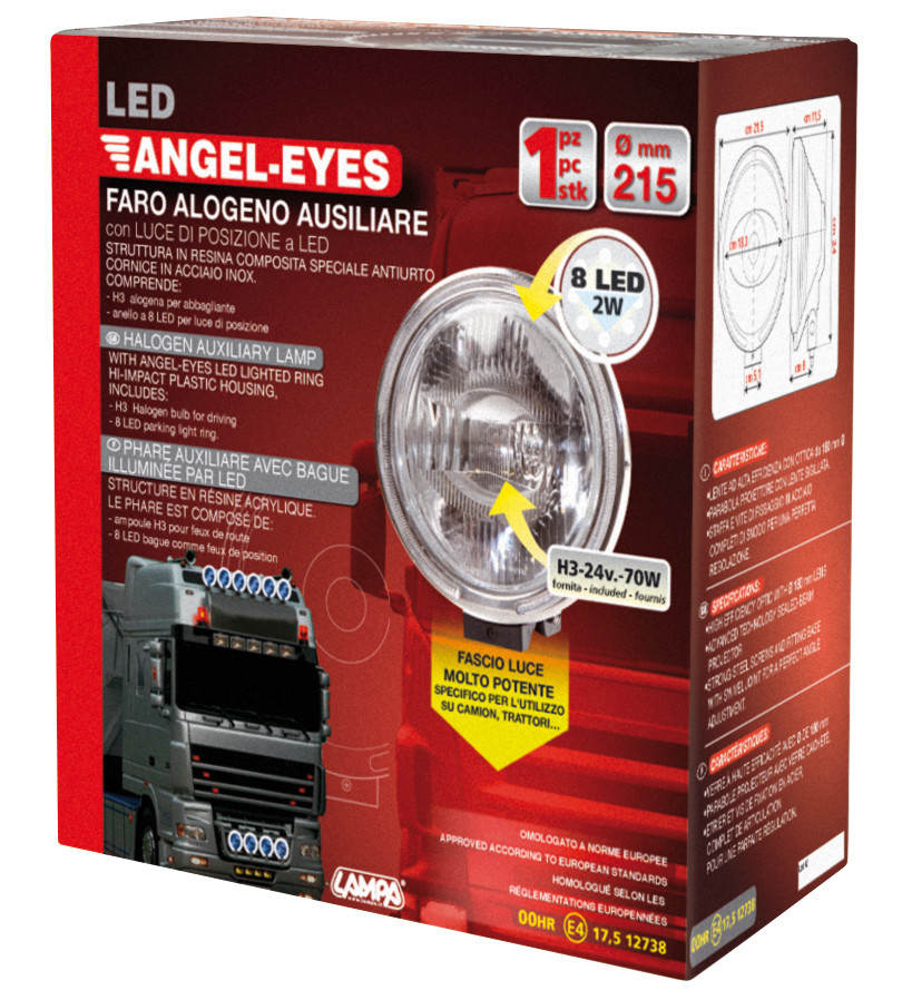 Luce di posizione stile occhi d’angelo. Struttura in resina composita speciale, con profilo cromato. Omologato a norme Europee. Lampadina inclusa (24V – H3 – 70W)