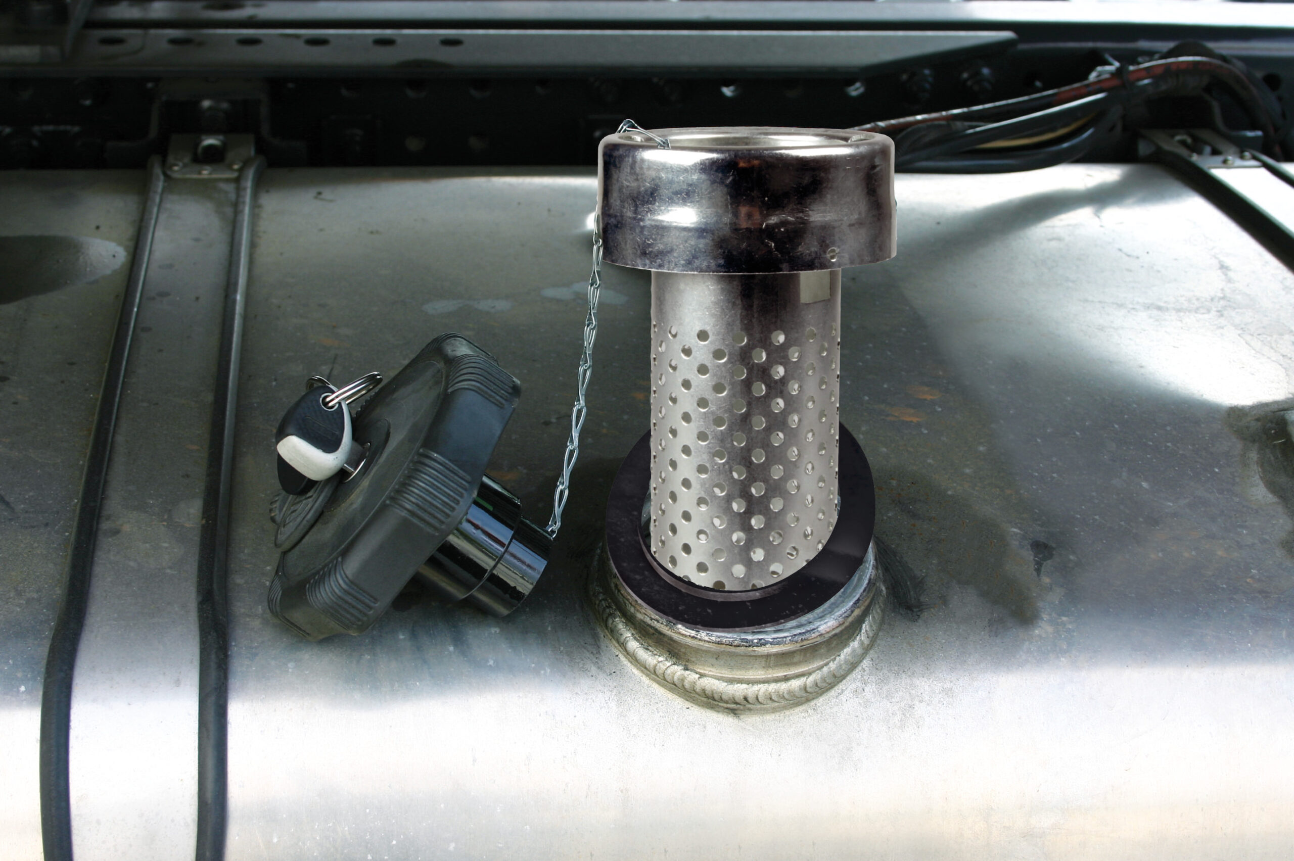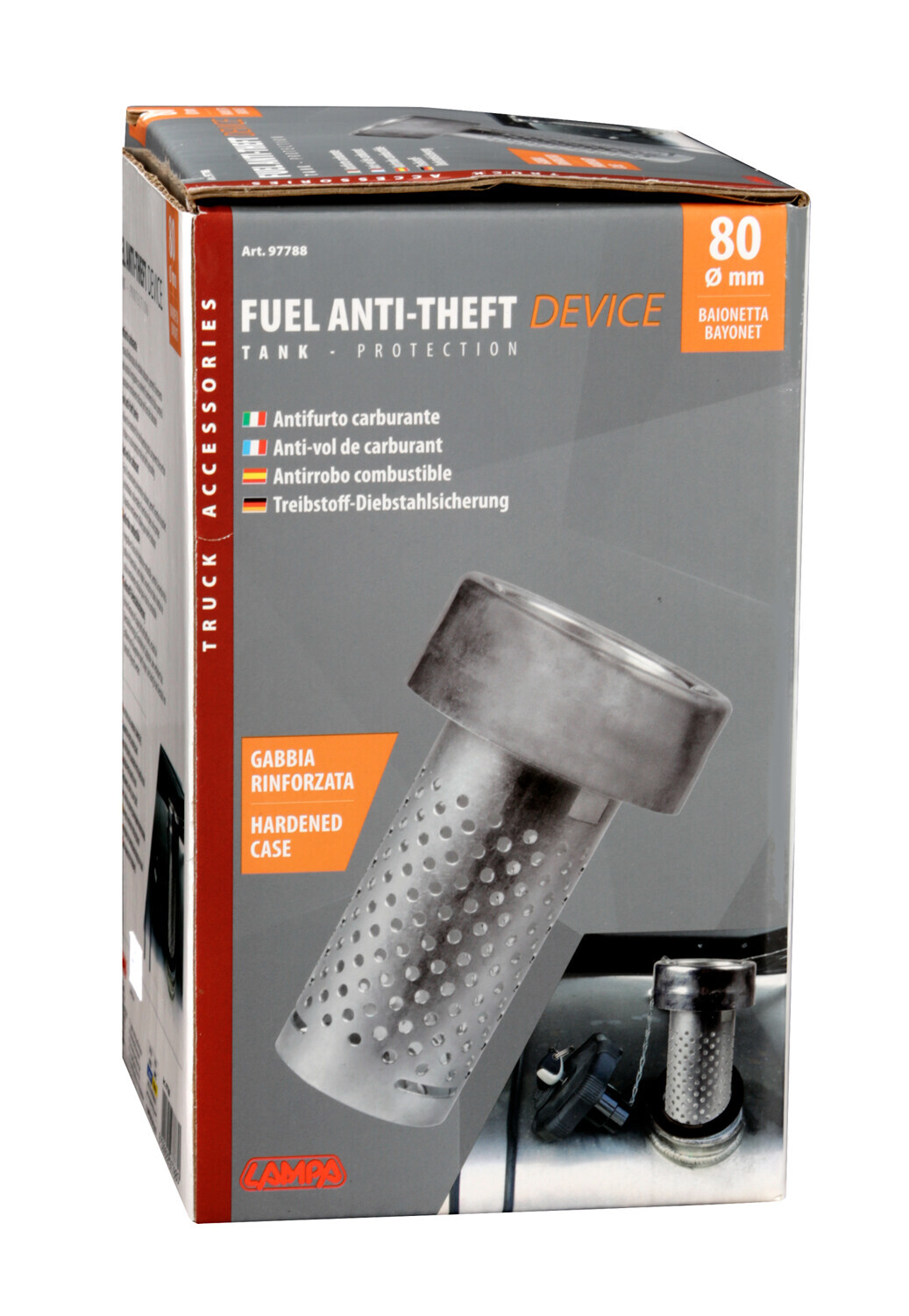 Fissato all’imboccatura del serbatoio carburante, permette l’inserimento della pistola di erogazione, ma previene l’inserimento di tubi o pompe di aspirazione normalmente utilizzate per il furto del carburante