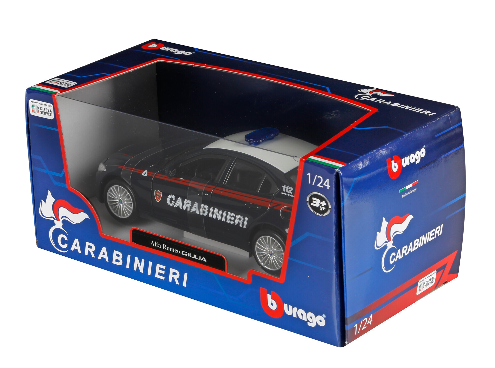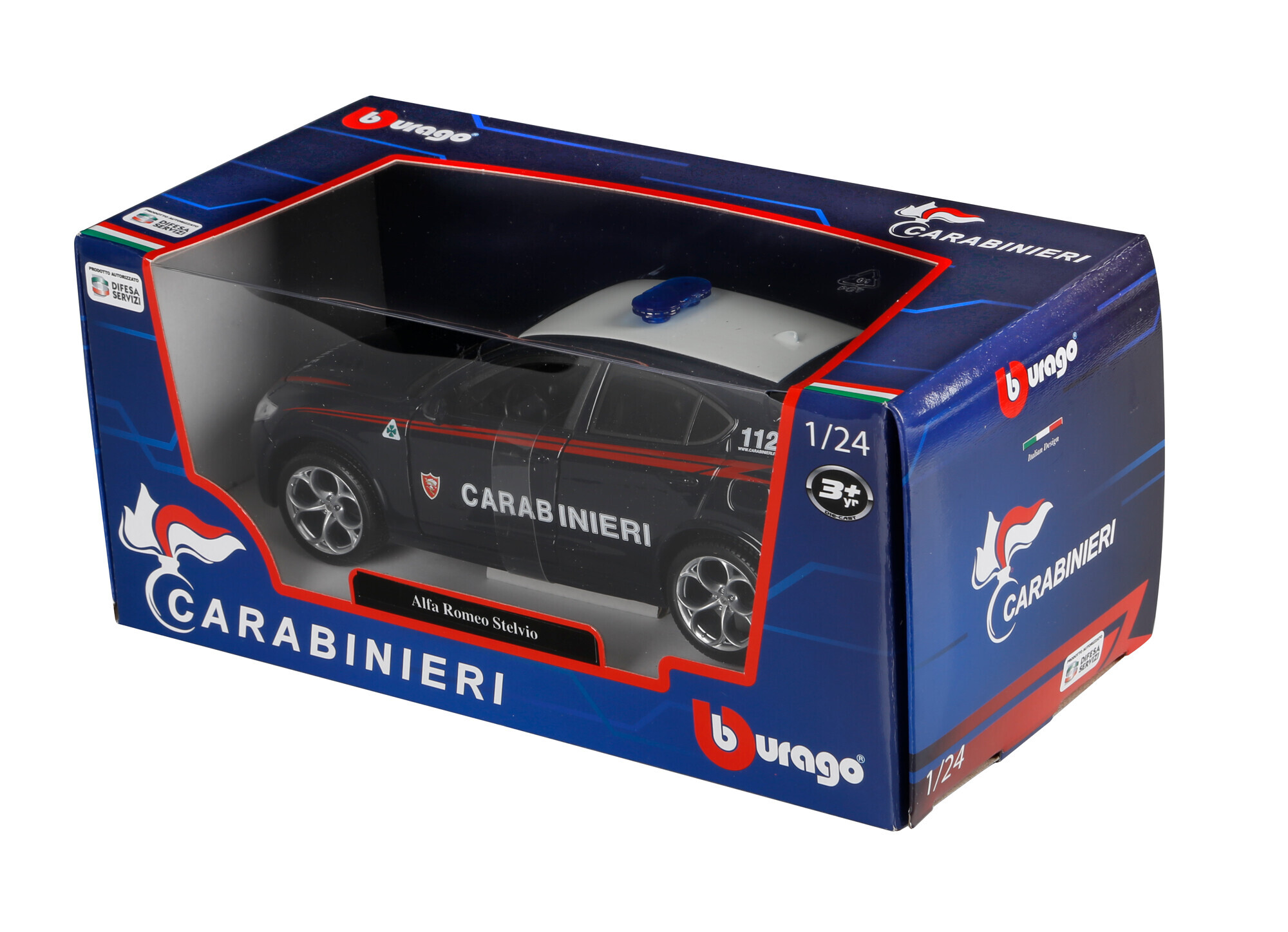 Auto Carabinieri, Alfa Romeo Giulia / Stelvio assortite, Burago, scala 1:24, scatola vetrina