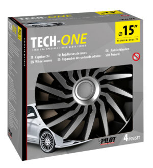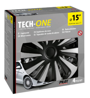 Kojin Carbon Silver-Black – Set 4 copricerchi – Ø 15″