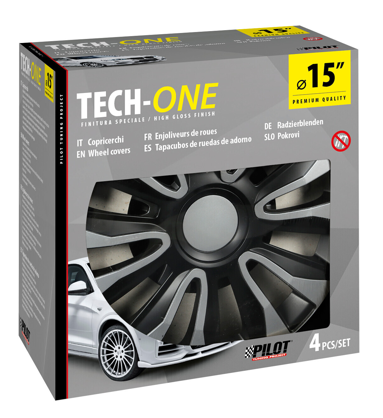 Raze Silver/Black – Set 4 copricerchi – Ø 15″