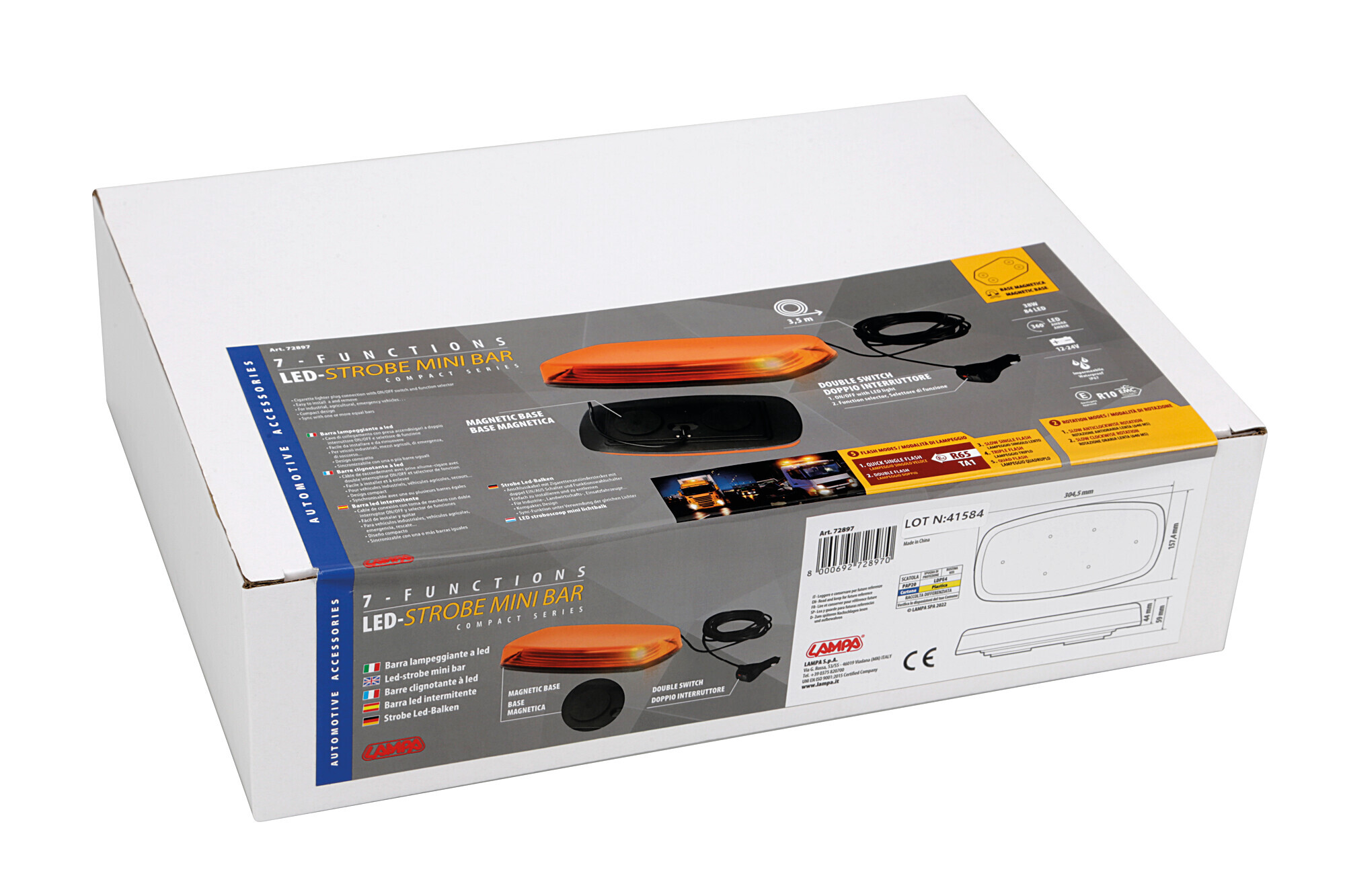 Barra lampeggiante arancio, 7 funzioni, 12/24V