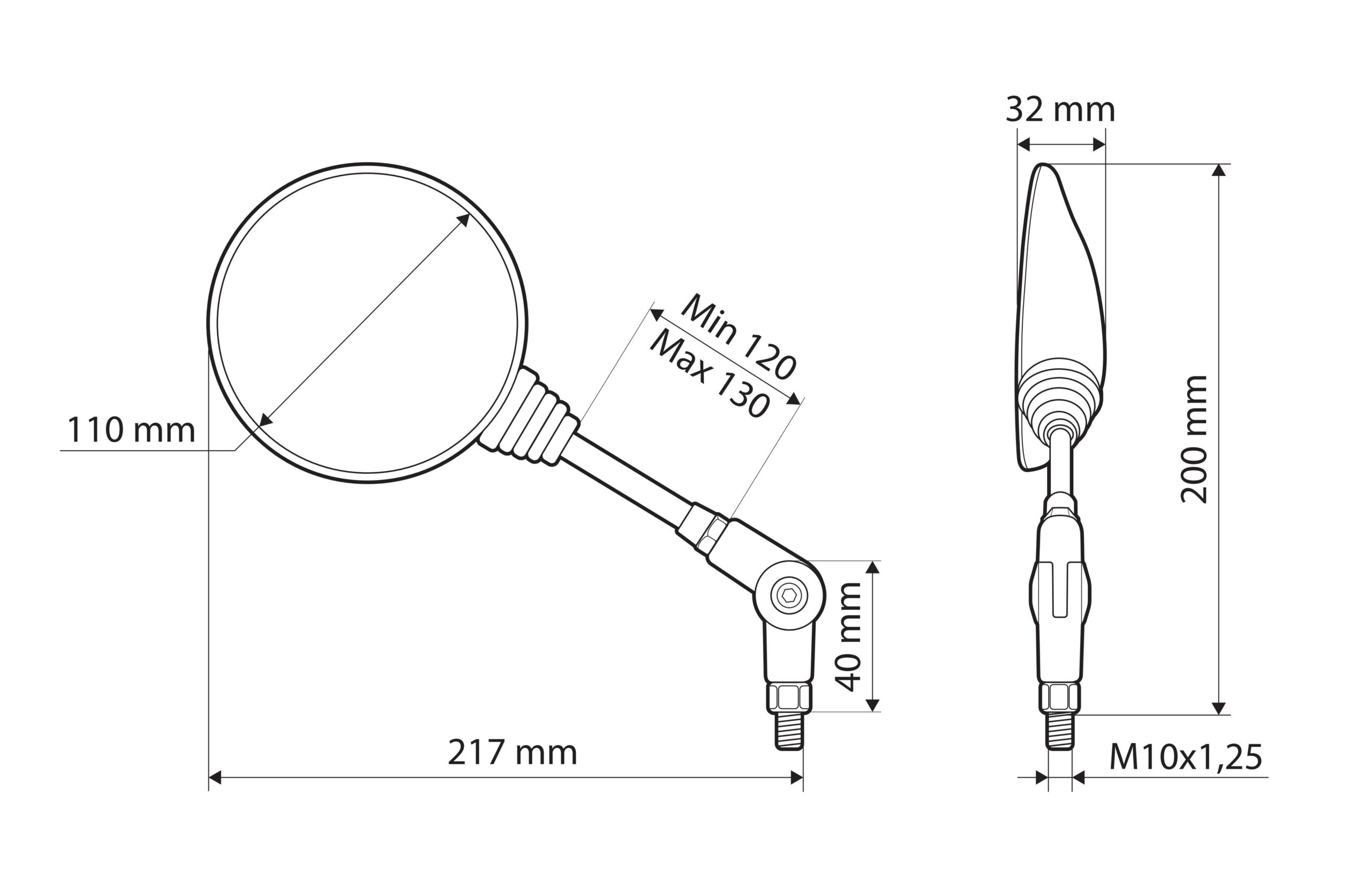 Estensore e sollevatore specchi moto – Filetto M10 sinistro