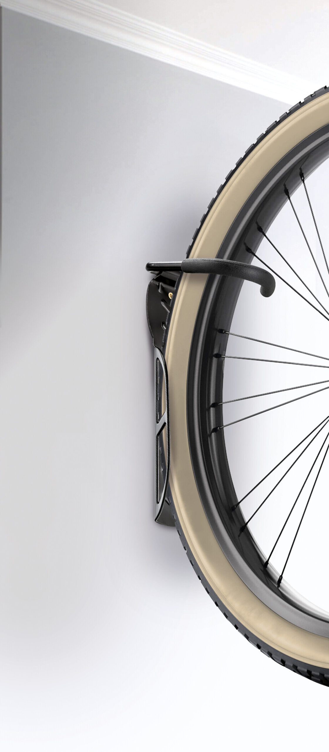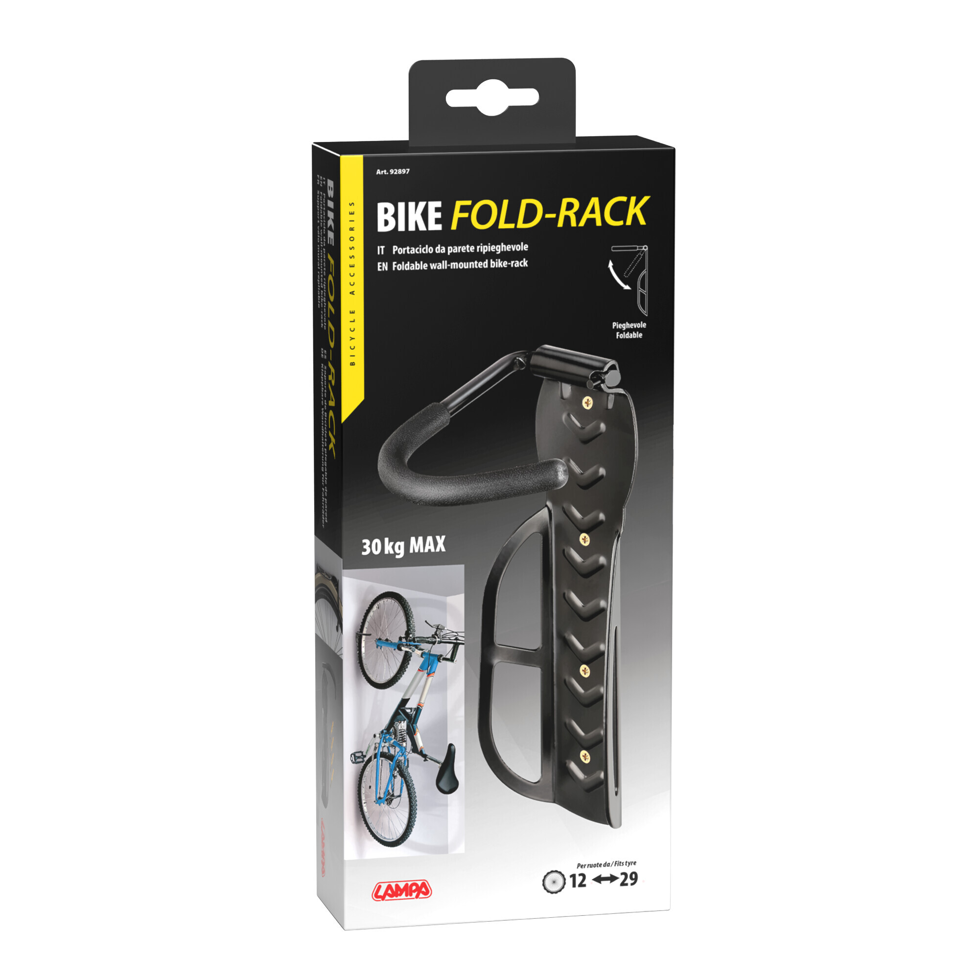 • Staffa porta-ruota con copertura in TPE per proteggere il cerchione da graffi