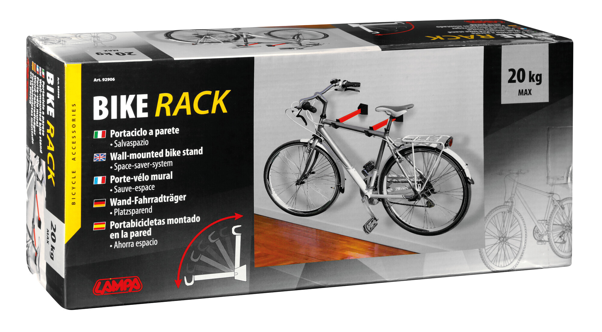 Soluzione salvaspazio per il parcheggio della bicicletta. Portata massima 20 kg. Ganci antigraffio. Kit montaggio fai da te