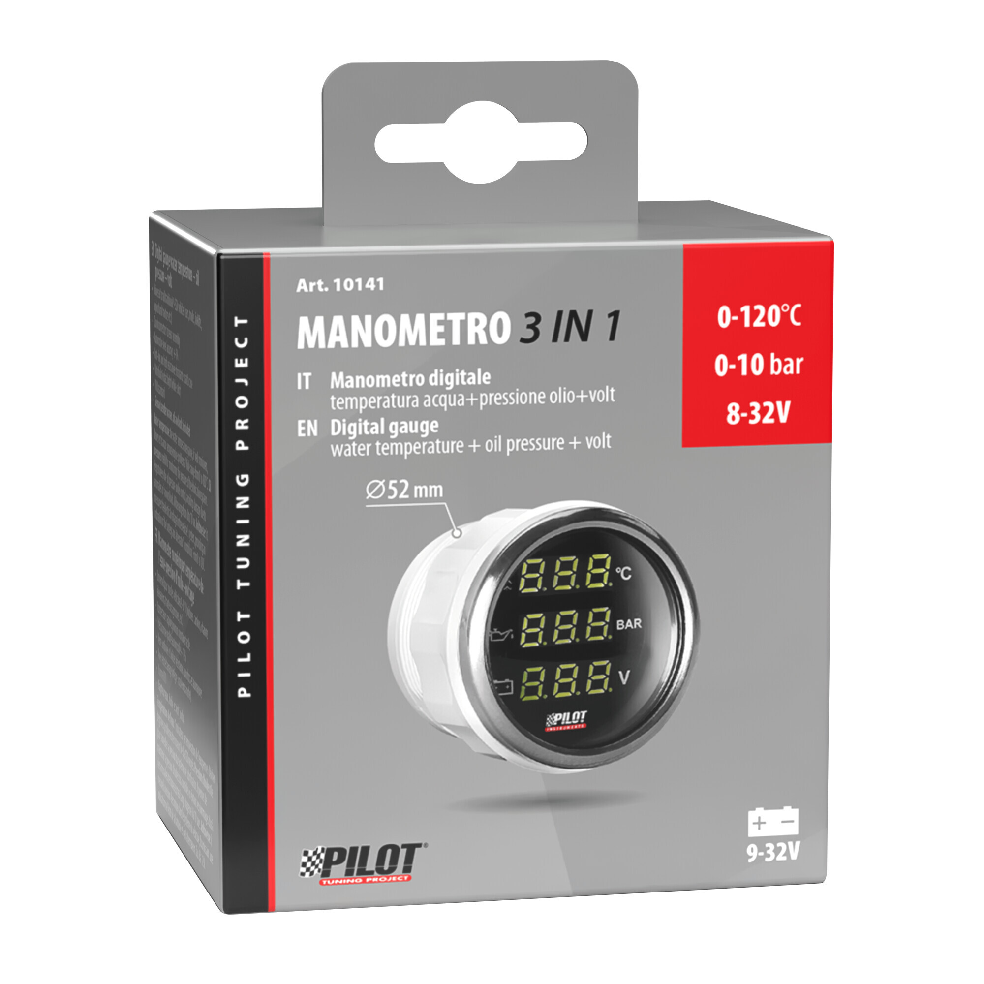 Black Digital Gauge Series, Manometro 3 in 1 – Ø 2” (52 mm)