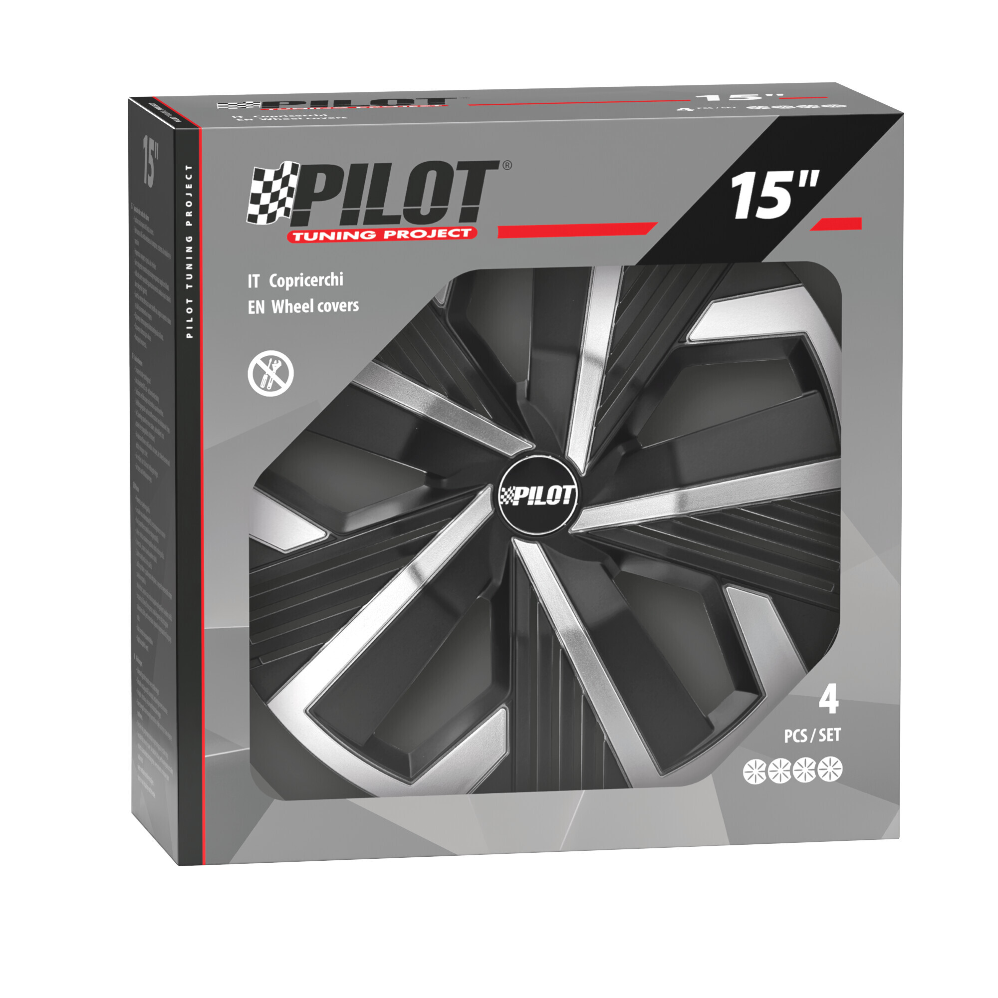 Vortexx – Set 4 copricerchi – 15″ – Nero/Argento