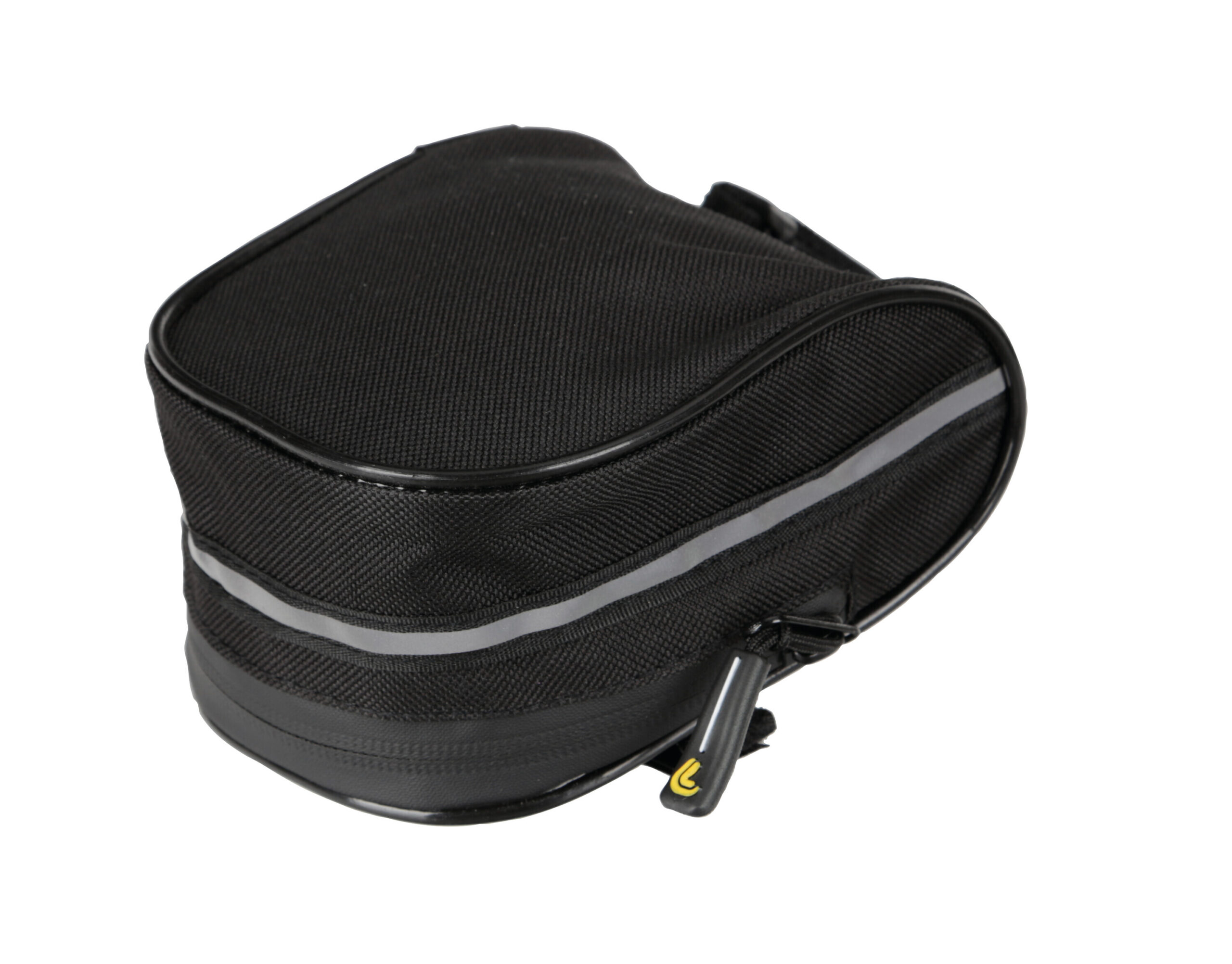 Banda riflettente, chiusura con cerniera, fissaggio a cinghia. In poliestere 600D, impermeabile, antistrappo.
