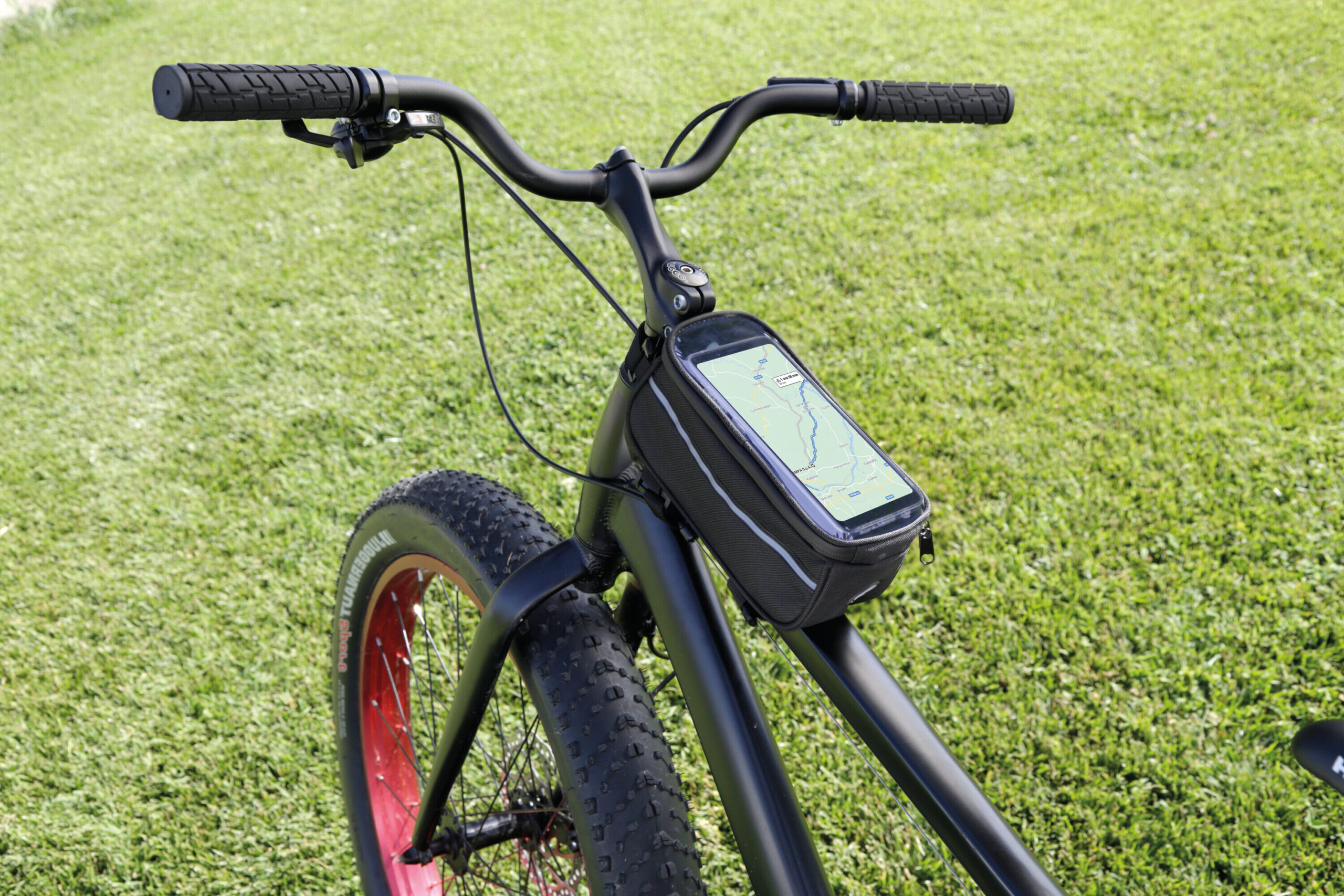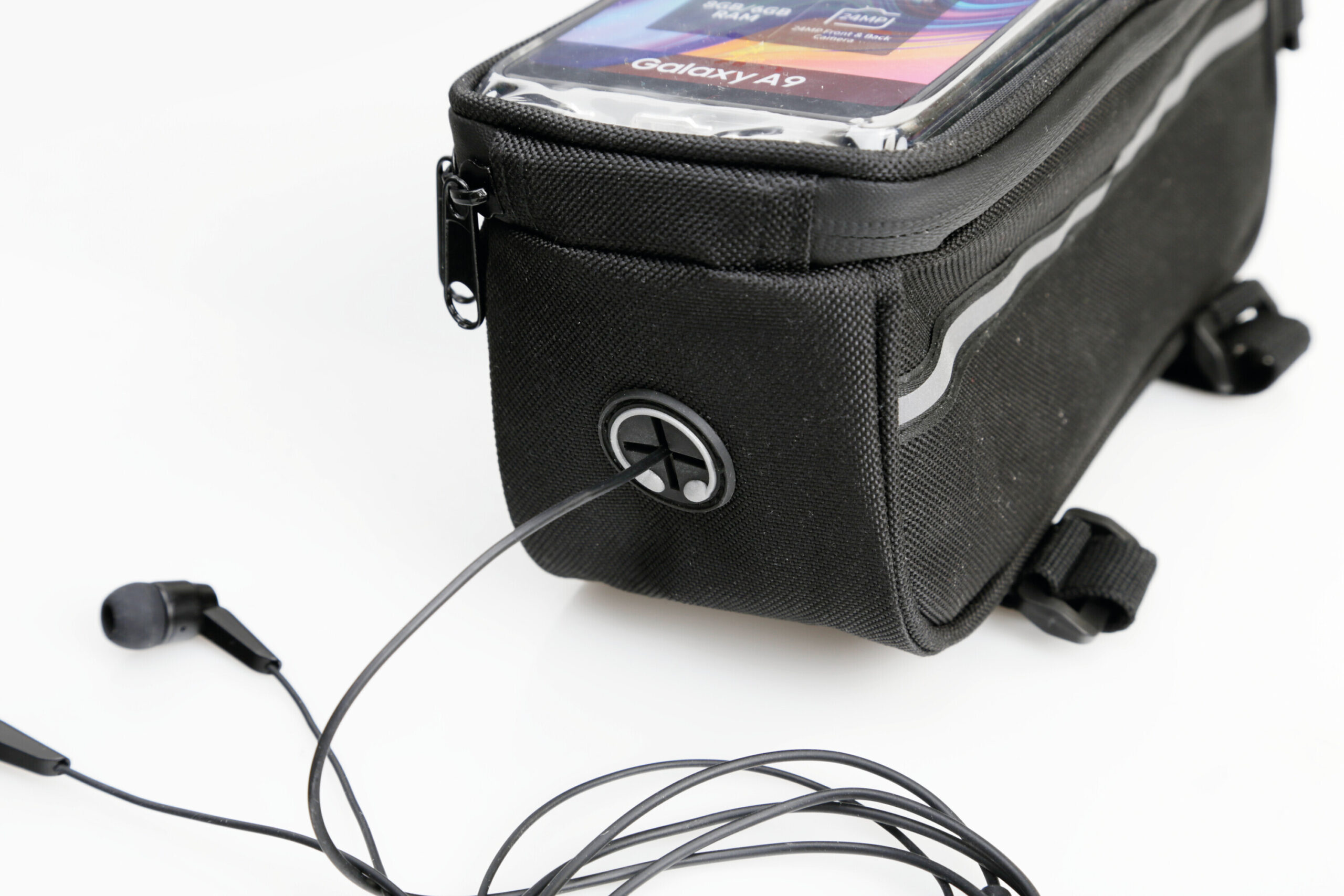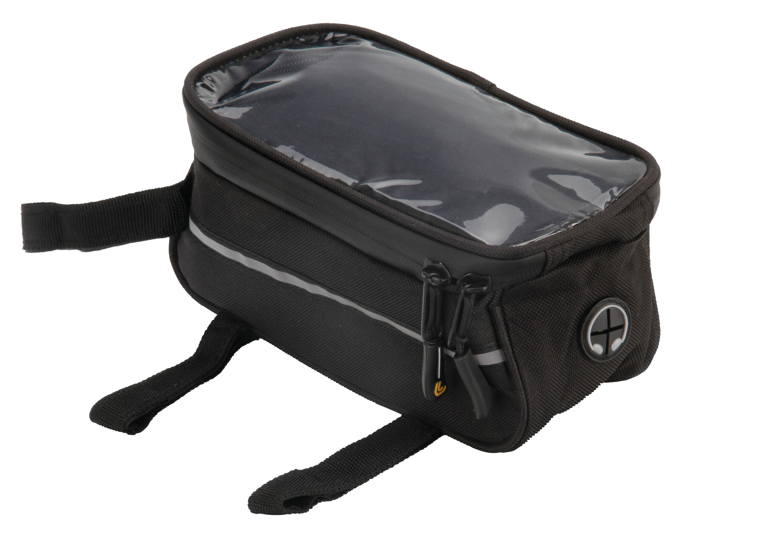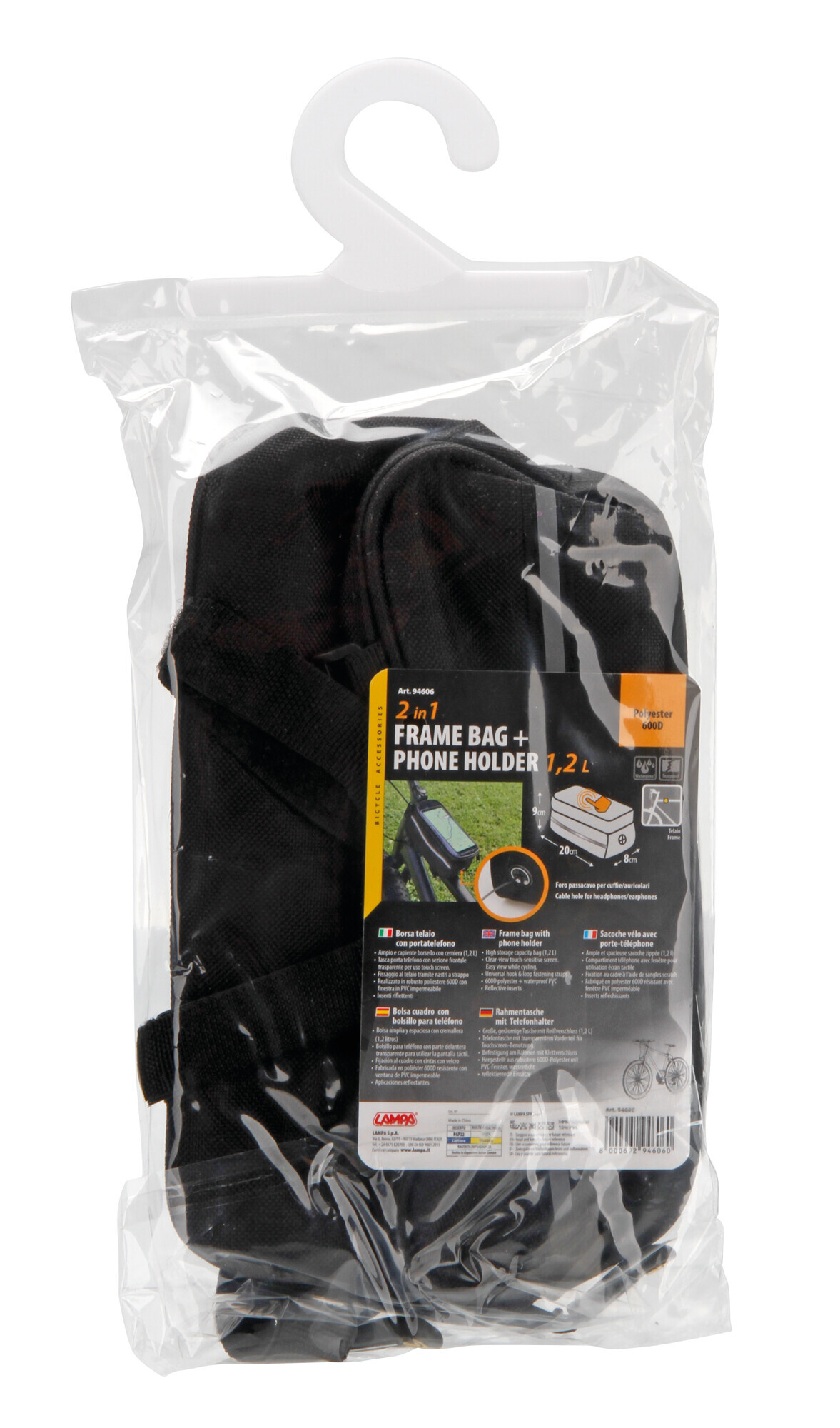 • Tasca porta telefono con sezione frontale trasparente per uso touch screen.