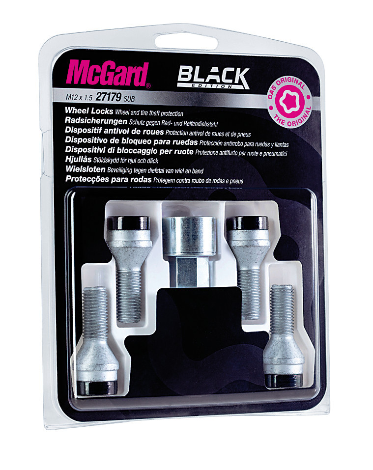 Alla rinomata sicurezza del bullone antifurto standard si aggiunge la finitura nera in PVD della testa, per un “dark-look” coordinato al cerchio e la massima resistenza alla corrosione.