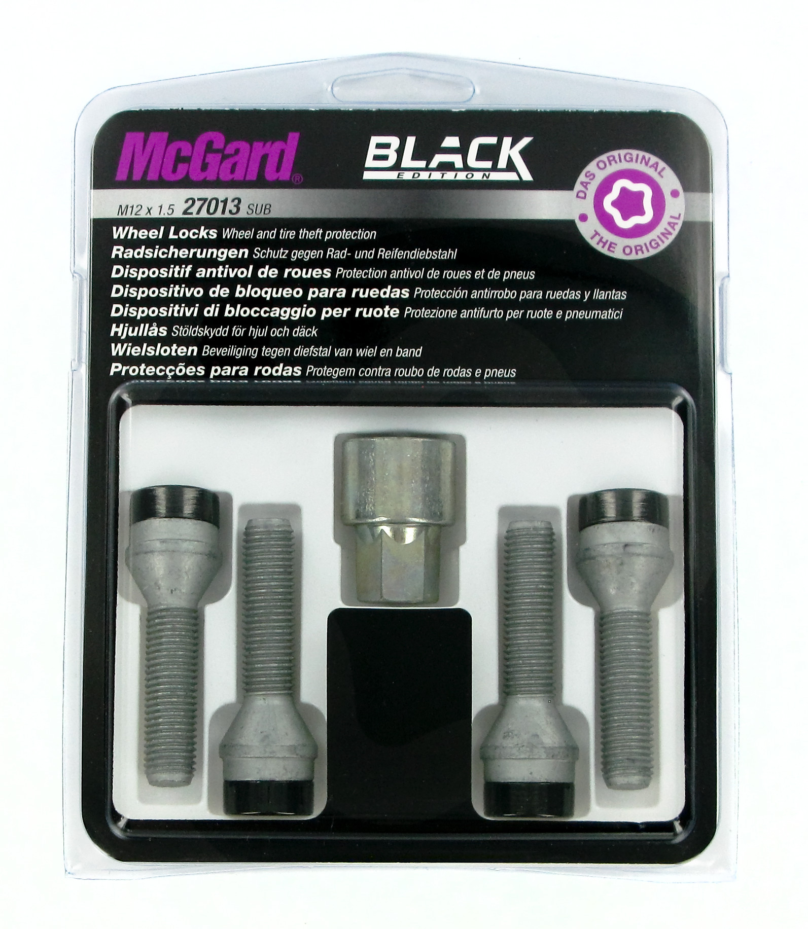 Alla rinomata sicurezza del bullone antifurto standard si aggiunge la finitura nera in PVD della testa, per un “dark-look” coordinato al cerchio e la massima resistenza alla corrosione.
