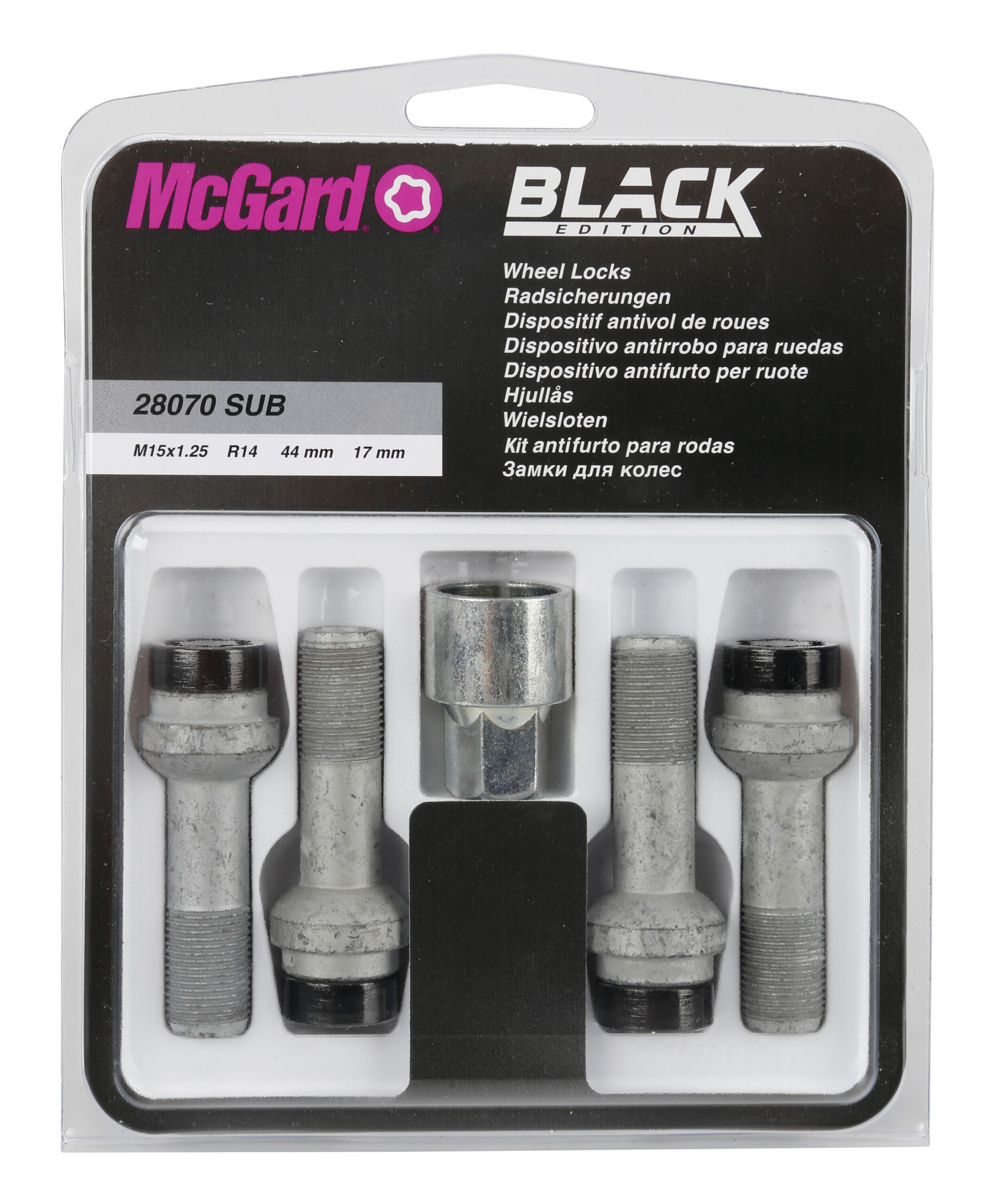 Alla rinomata sicurezza del bullone antifurto standard si aggiunge la finitura nera in PVD della testa, per un “dark-look” coordinato al cerchio e la massima resistenza alla corrosione.