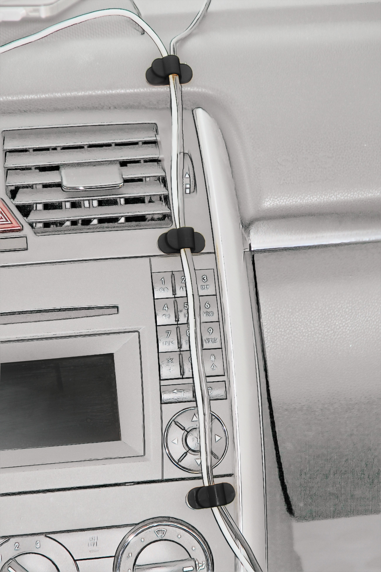 Per fermare, raccogliere, ordinare o trattenere in posizione i cavetti di auricolari, caricatori cellulari, cuffie, alimentatori USB, navigatori satellitari…