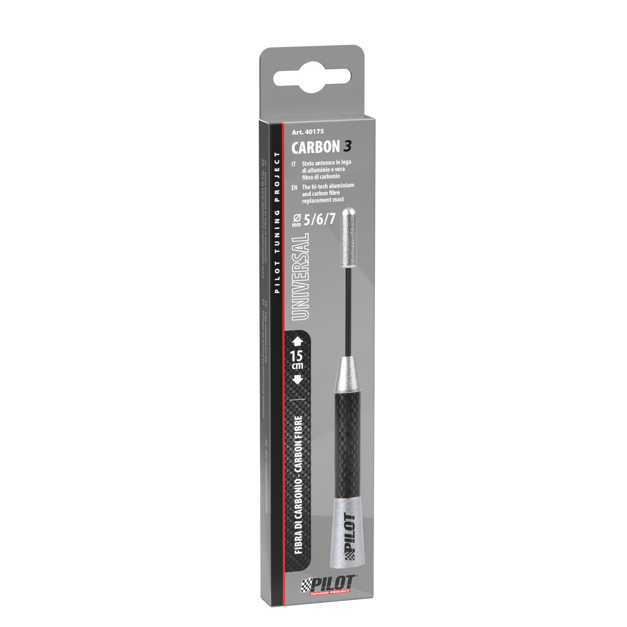Stelo antenna in alluminio e vera fibra di carbonio. Per attacchi con innesto a vite da Ø 5, 6 o 7 mm