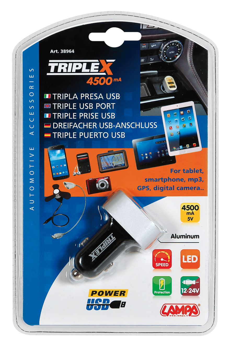 Caricabatteria 3 porte Usb – 4500 mA – 12/24V
