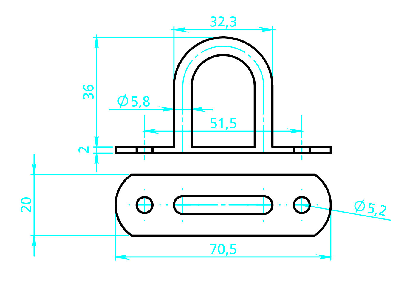 Cavallotti tendifune rettangolari, 2 pz