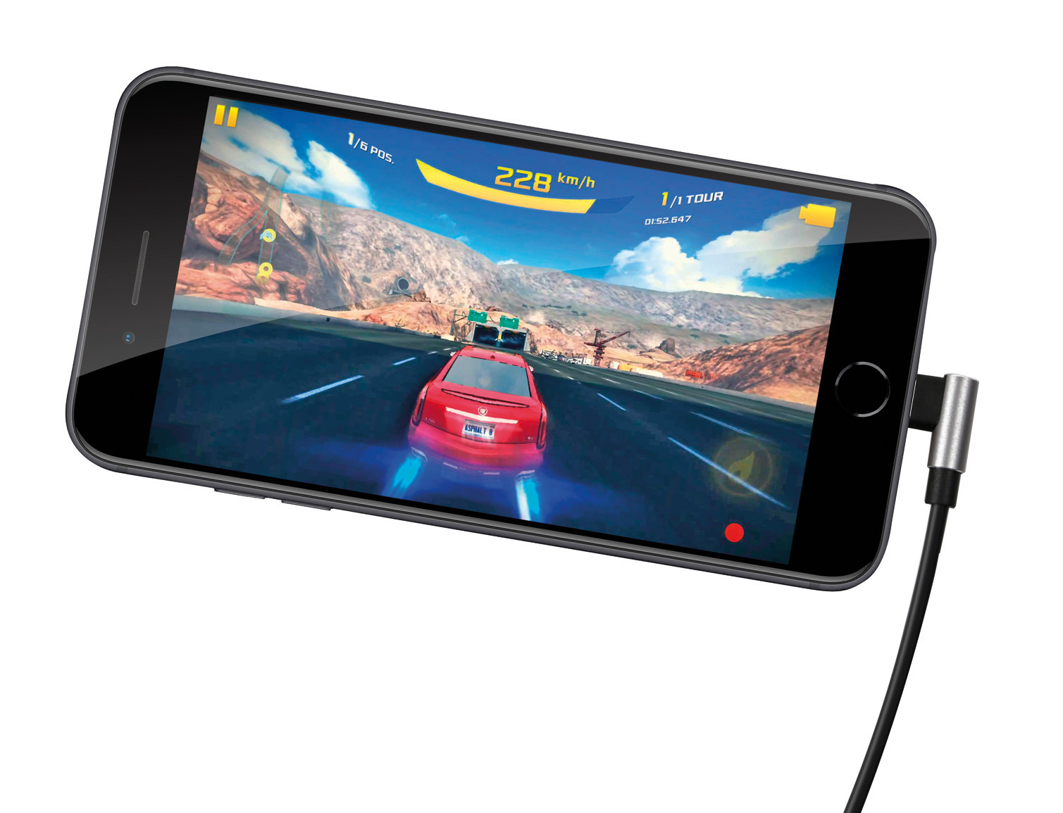 Cavo ricarica e dati. Presa facilitata mentre giochi, guardi video o usi il GPS in posizione orizzontale, senza nessun intralcio. Struttura in metallo, collo rinforzato. Compatibile con ricarica super veloce