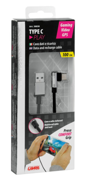 Cavo 90° Usb > Usb Type-C – 200 cm – Nero