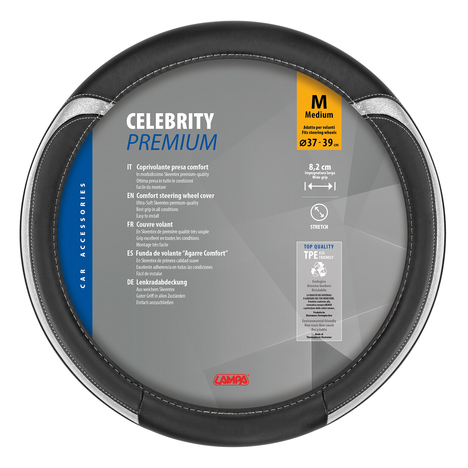 Celebrity, coprivolante in Skeentex – M – Ø 37/39 cm – Argento