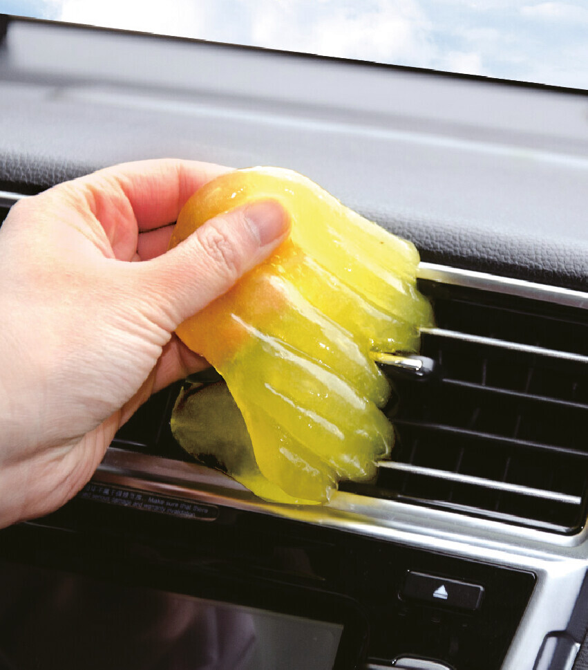 • Gel pulente per rimuovere polvere, briciole e pelucchi da cruscotto, bocchette d’aerazione, vani porta oggetti, leva cambio, pulsanti