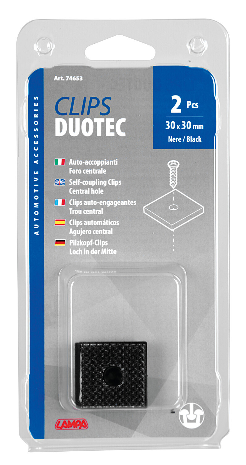 Clips Duotec auto-accoppianti, foro centrale, set 2 pz – 30×30 mm