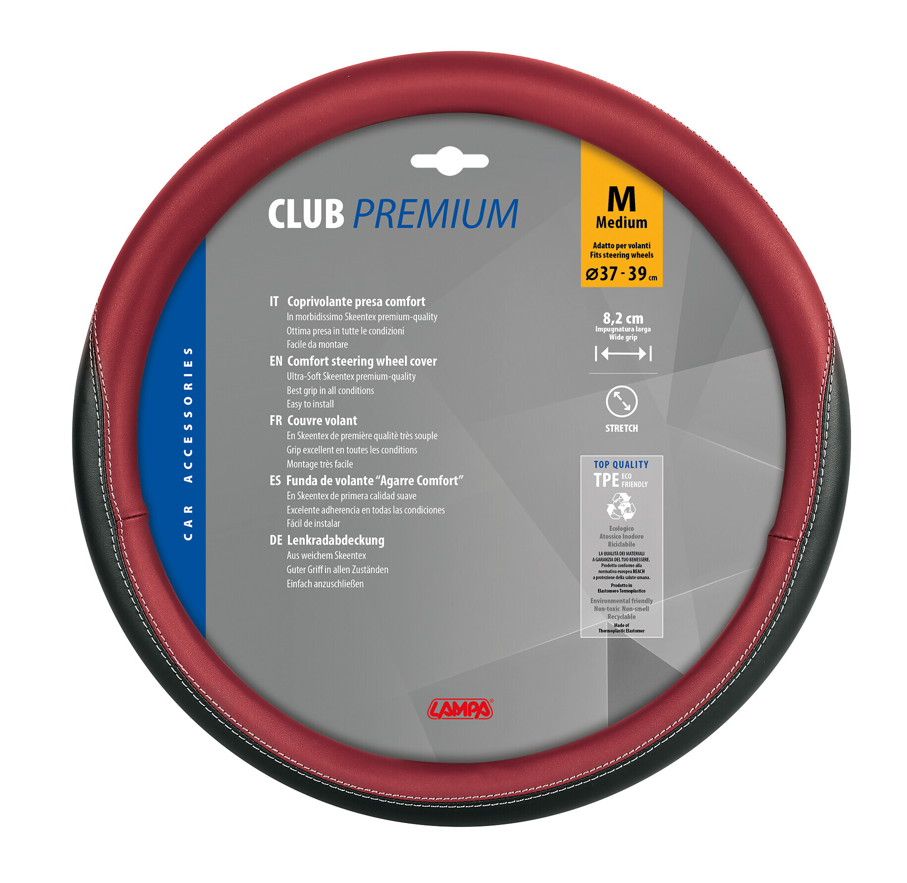 Club, coprivolante in Skeentex – M – Ø 37/39 cm – Nero/Rosso