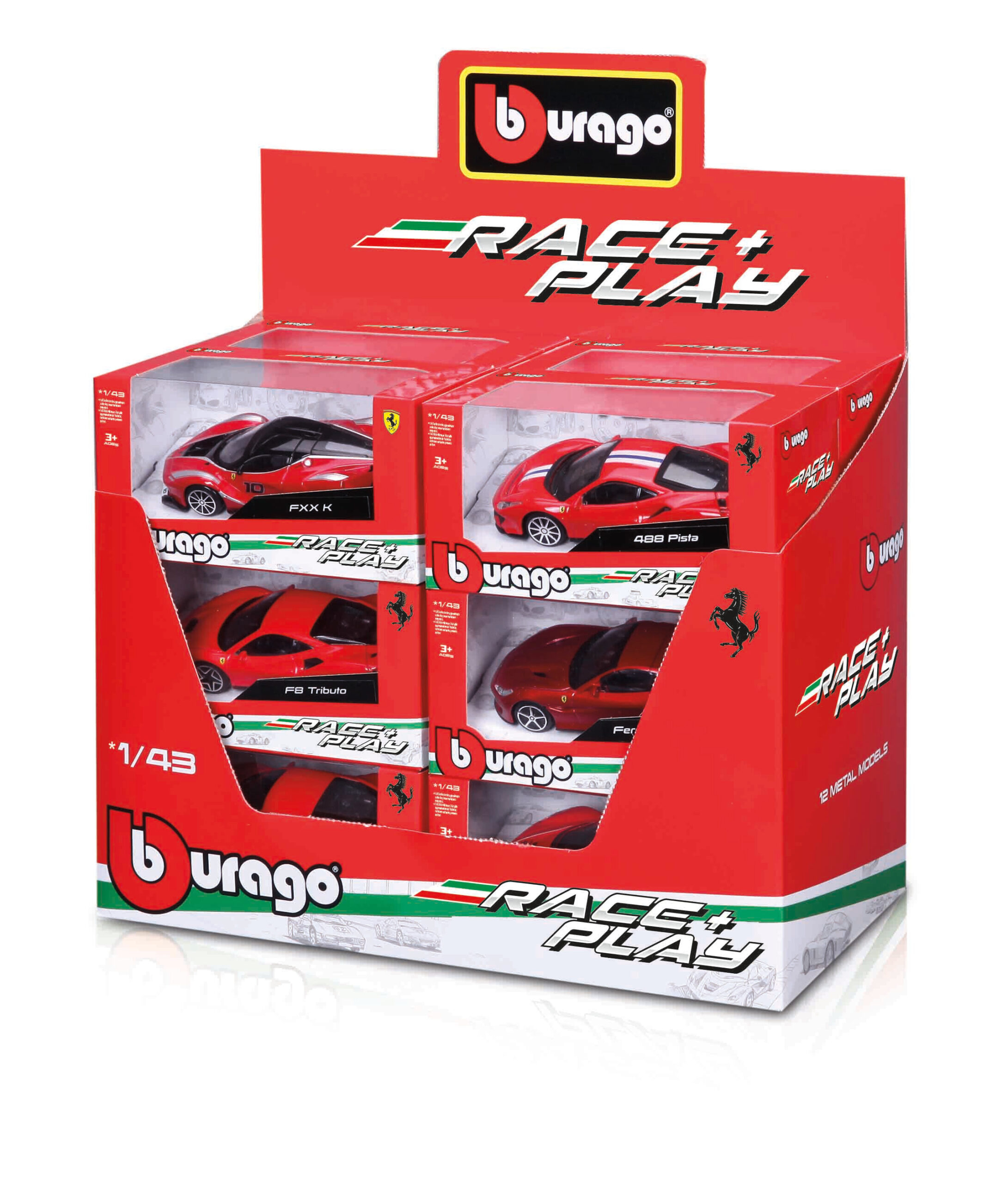 Collezione 12 Auto Ferrari, Burago, scala 1:43, display da banco