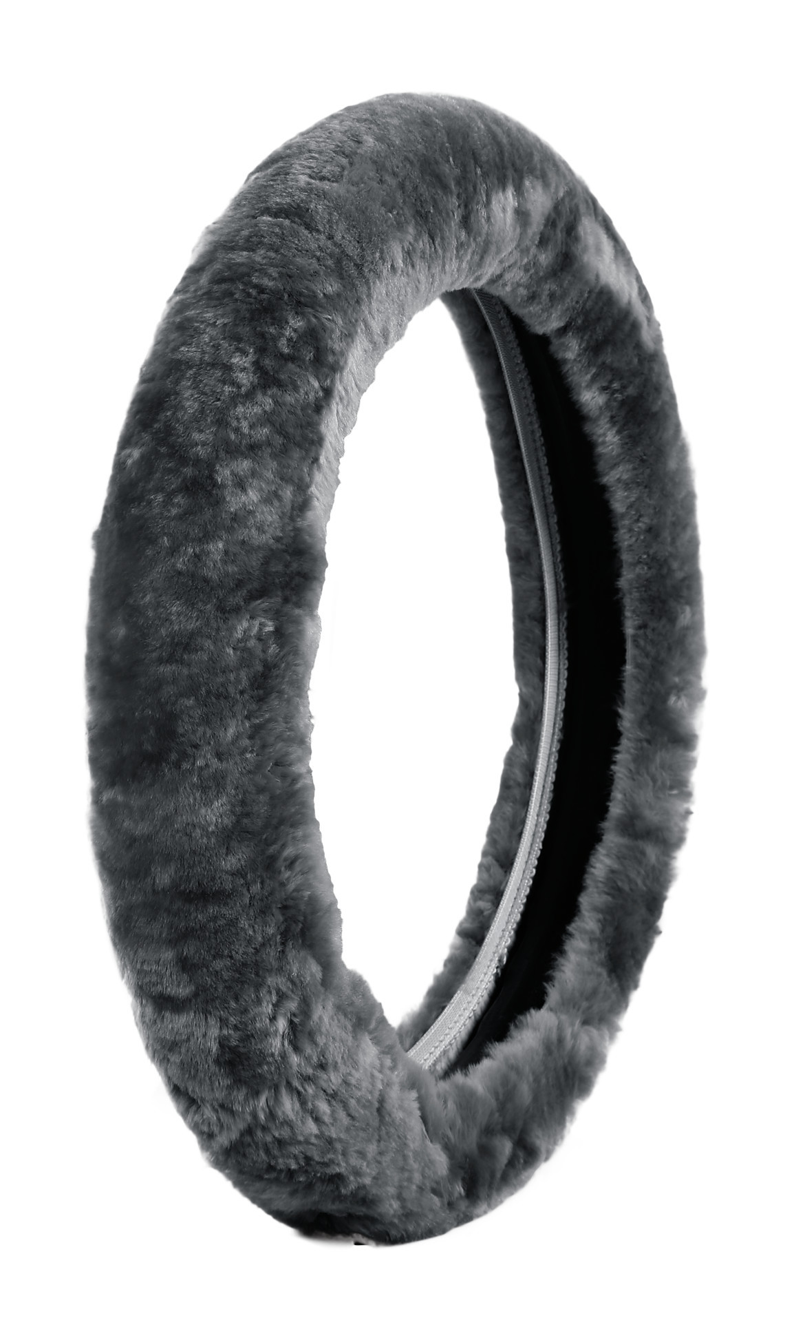 Comfort Wheel, coprivolante elasticizzato in vera pelliccia – Antracite – Ø 35-42 cm