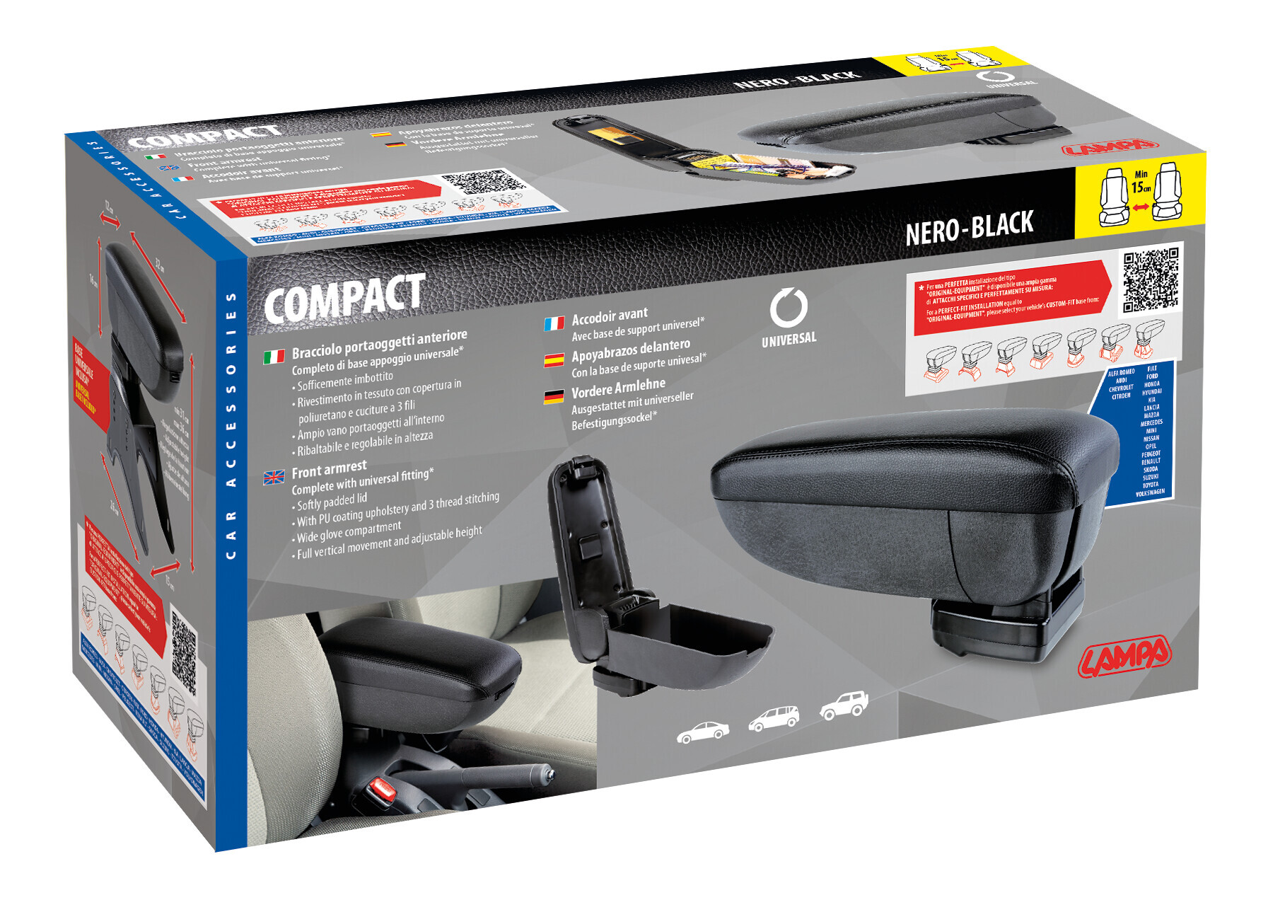 Compact, bracciolo 3 funzioni con doppio sistema di fissaggio – Nero