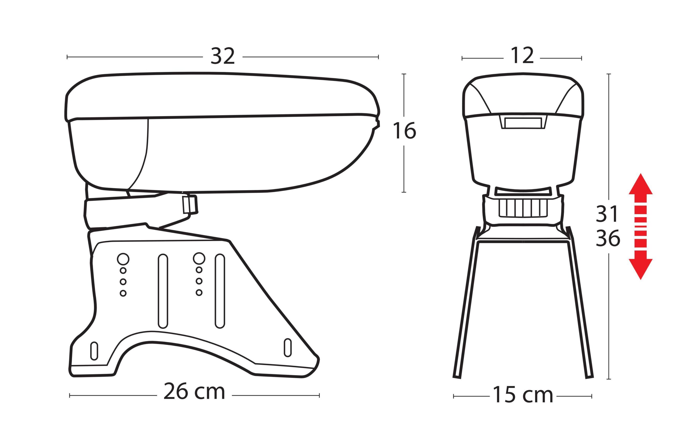 Premium, bracciolo 3 funzioni con doppio sistema di fissaggio e connessione USB, 12V – Carbon-Look
