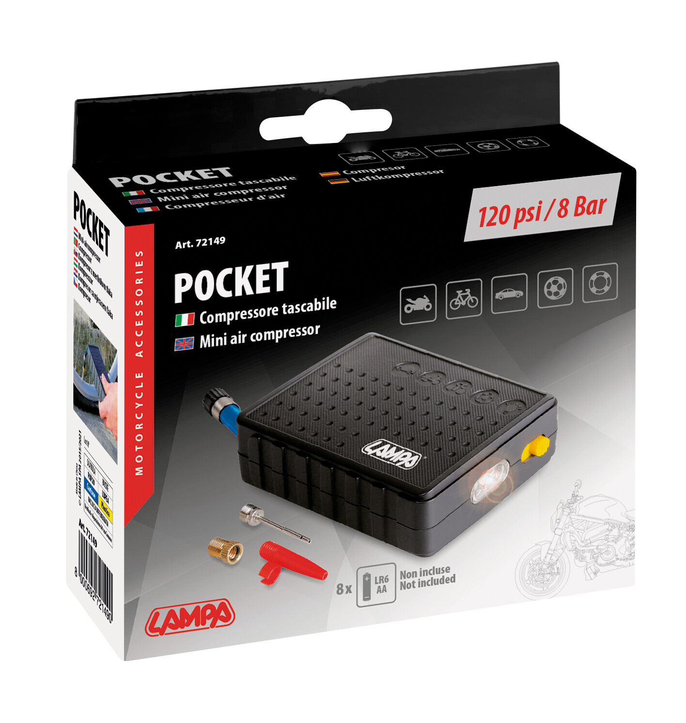 Adattatori Schrader, Presta e ago gonfiapalloni inclusi.