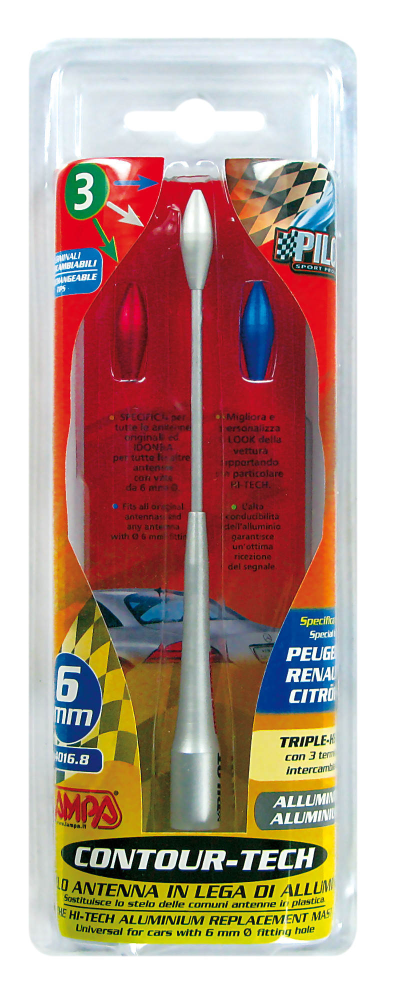 Stelo antenna in lega di alluminio. Con 3 terminali intercambiabili. Ottima ricezione del segnale radio