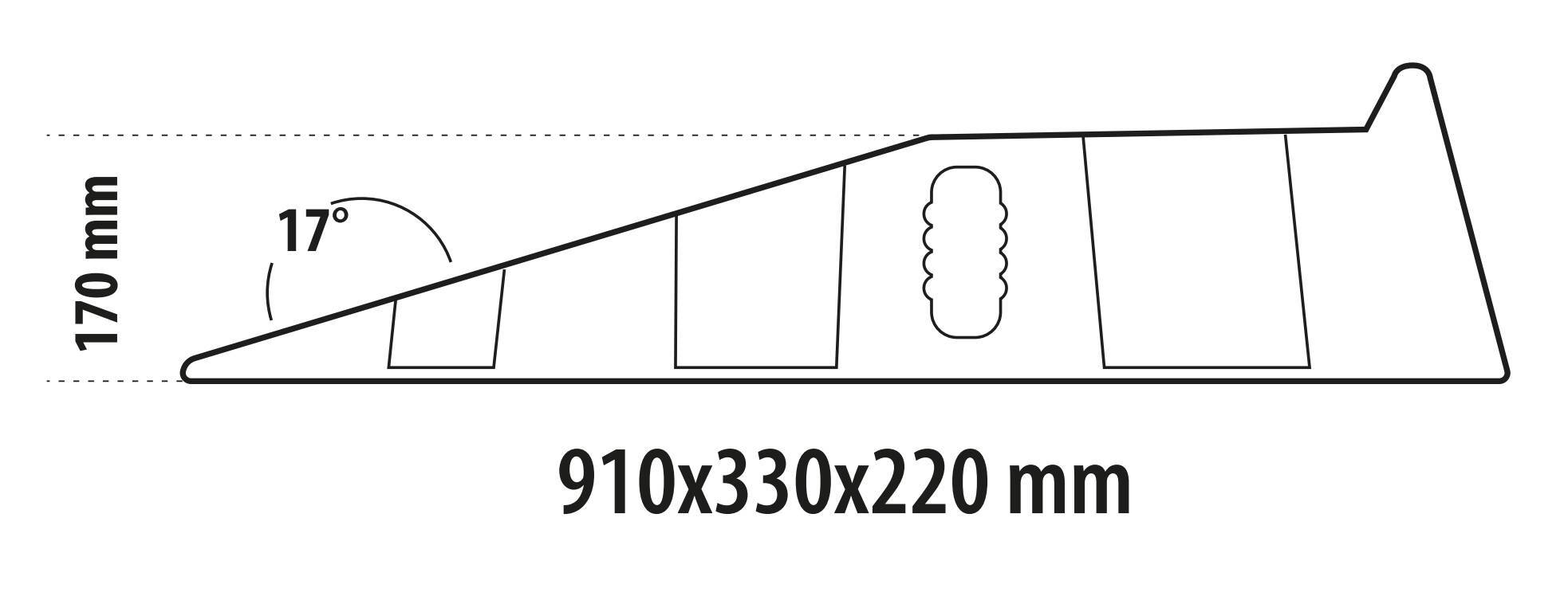 • Le rampe presentano una pendenza di 17° e un altezza di 170 mm, 6 piedini antiscivolo sulla parte inferiore per una maggiore sicurezza