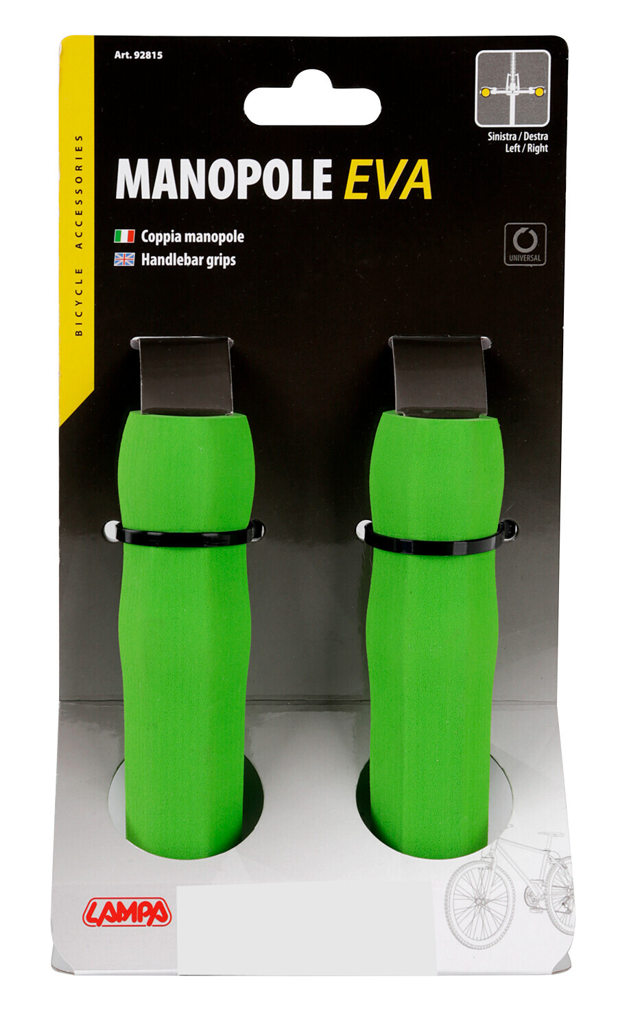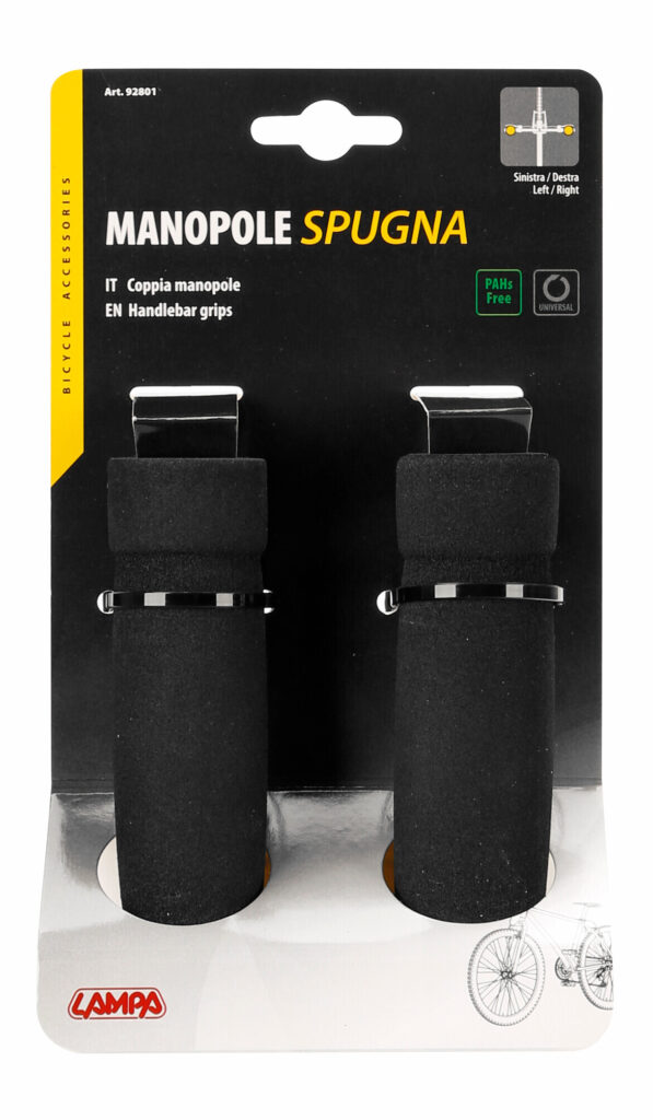 In morbida spugna ad alta densità. Universali per tutti i manubri. Complete di tappi copriforo manubrio. Antivibrazioni. Comode e antiscivolo. Ottima presa in tutte le condizioni. Colori assortiti