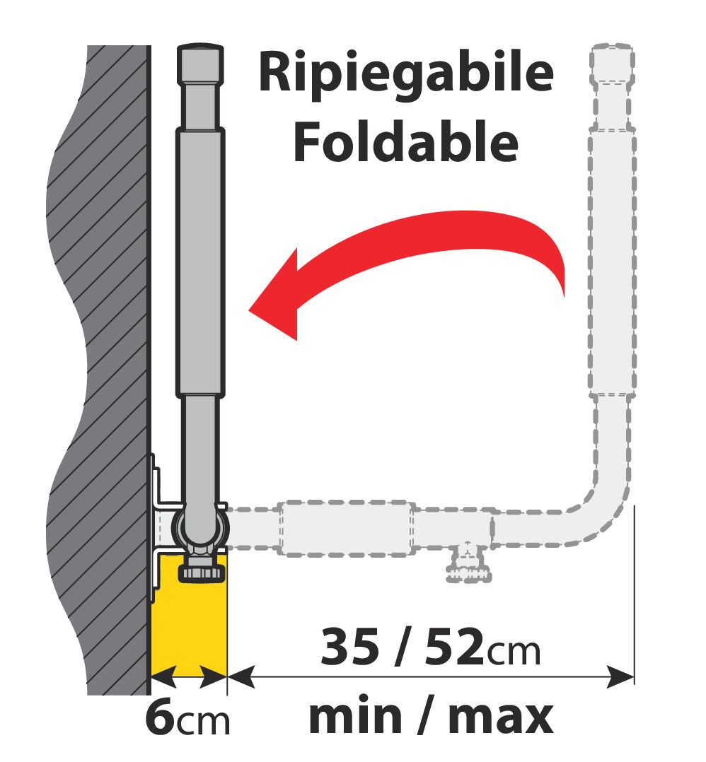 • Minimo ingombro, quando non in uso, possono essere ripiegati a filo parete.