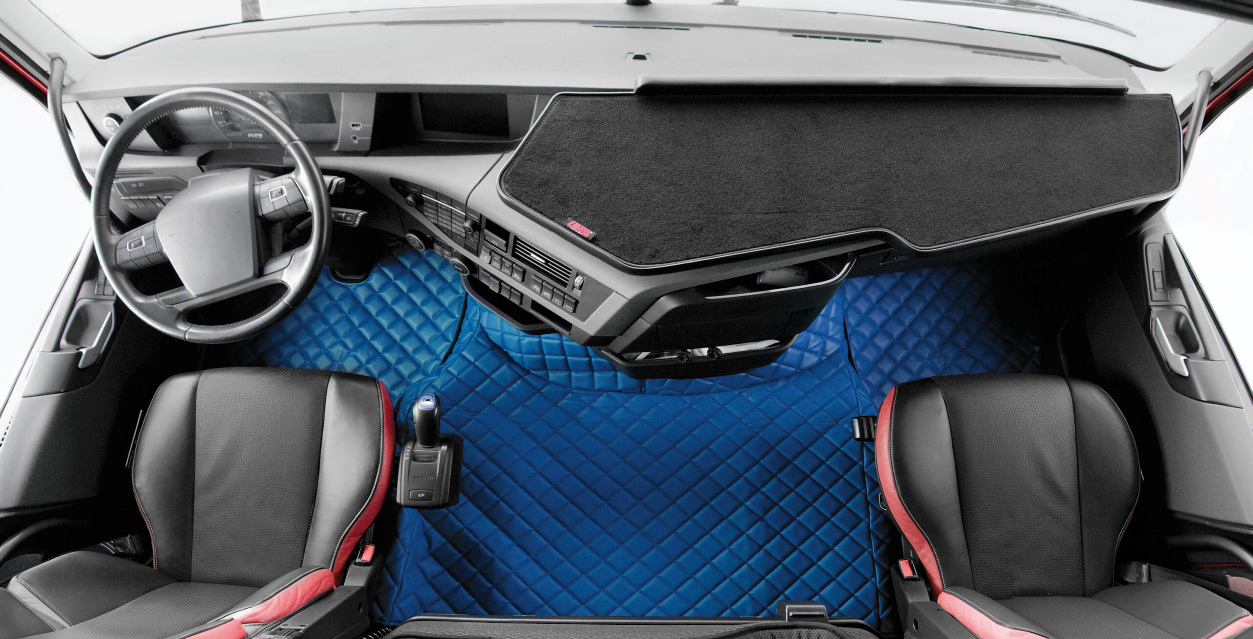 Coppia tappeti in Skeentex – Blu – compatibile per Mercedes Actros MP4 (09/11>09/19) cabina larga, sedile pass. pieghevole, tunnel – Mercedes Actros MP5 (10/19>) cabina larga, sedile pass. pieghevole, tunnel – Mercedes Actros MP5 L (11/21>) cabina larga, sedile pass. pieghevole, tunnel