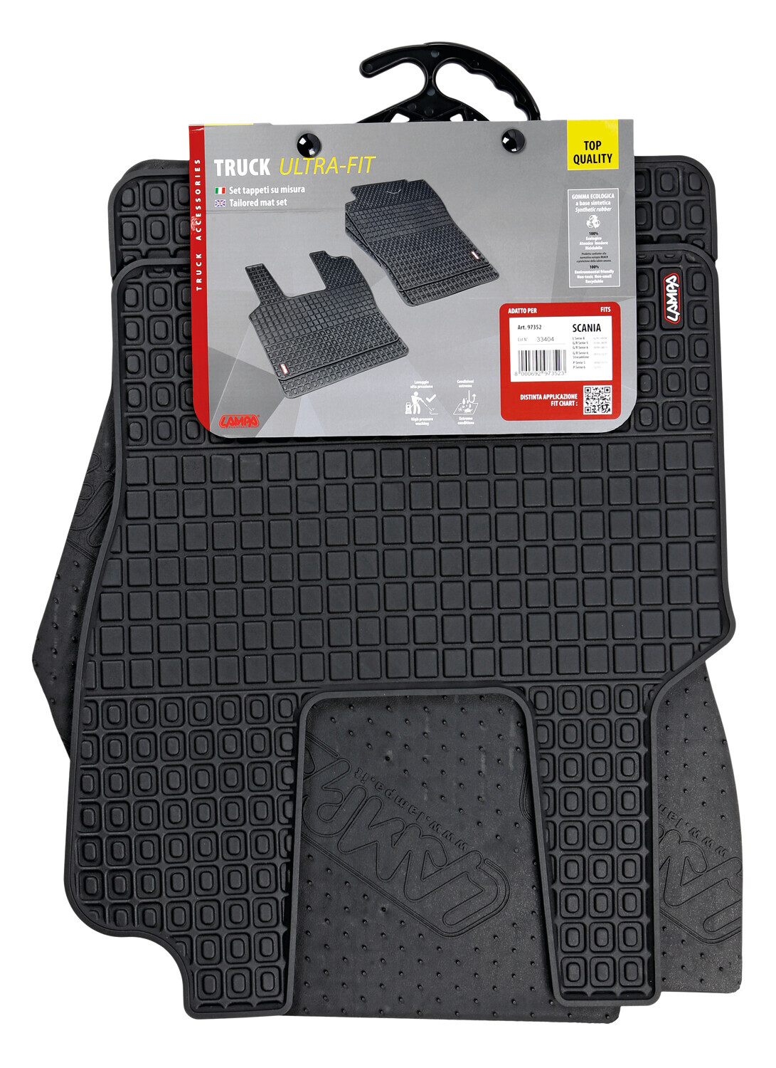 Coppia tappeti su misura in Eco Gomma – compatibile per Scania G Serie 5 (03/04>08/09) – Scania G Serie 6 (09/09>08/13) – Scania G Serie 6 – Streamline (09/13>12/17) – Scania L Serie 4 (02/95>09/04) – Scania P Serie 5 (09/04>11/11) – Scania P Serie 6 (12/11>12/17) – Scania R Serie 5 (03/04>08/09) – Scania R Serie 6 (09/09>08/13) – Scania R Serie 6 – Streamline (09/13>12/17)