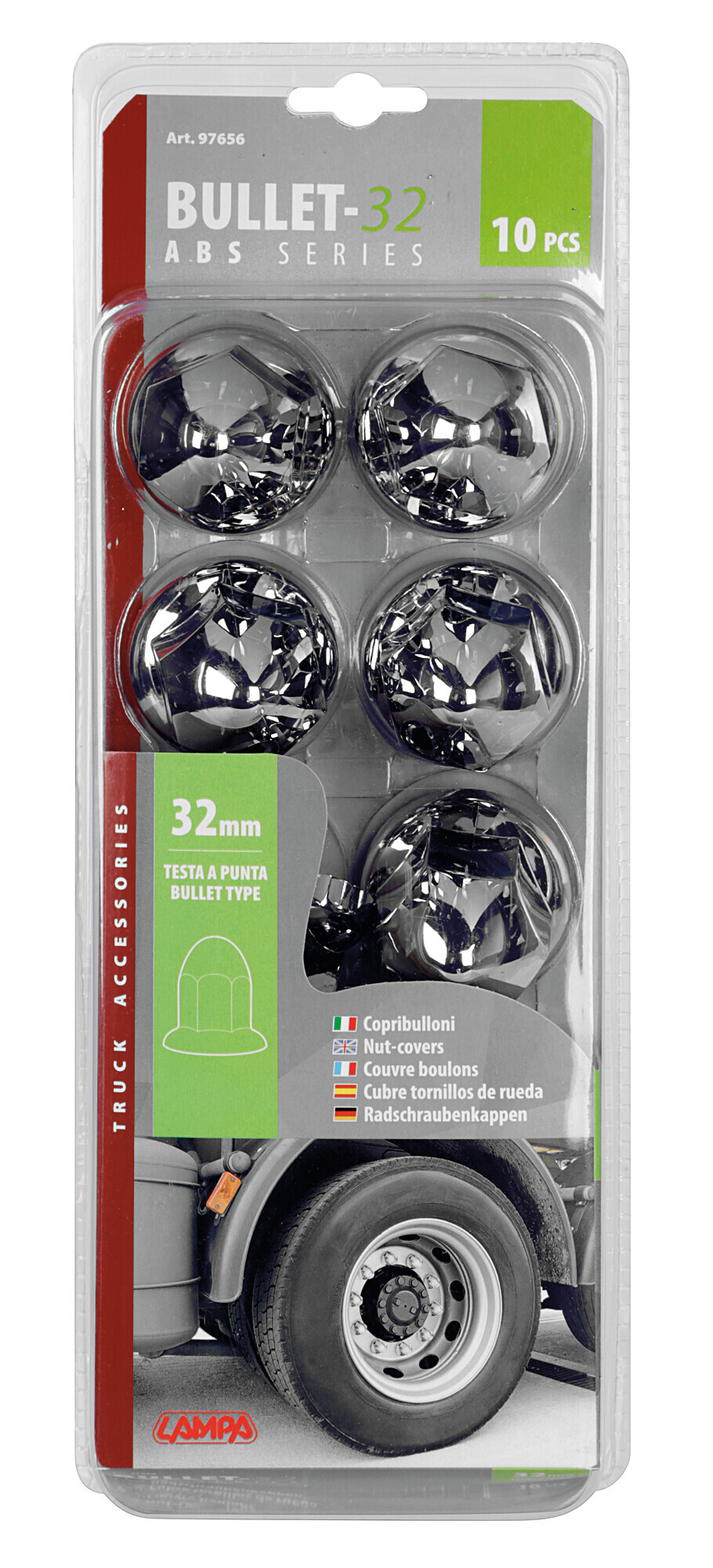 Set 10 copribulloni in ABS – Ø 32 mm – Cromo